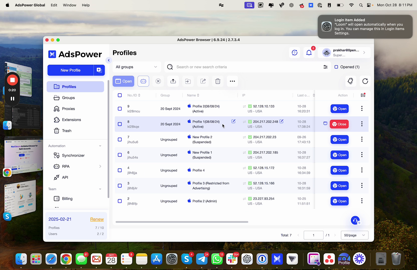 - Click the 'Open' button to access the selected profile. You may need to download additional software or browsers if prompted by the tool.