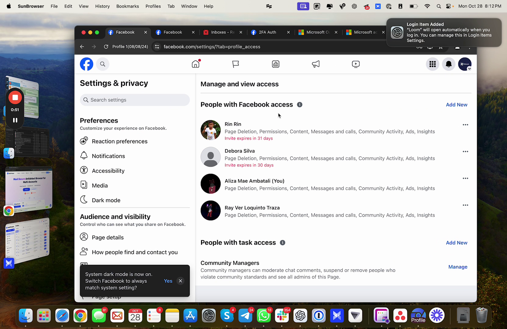 - Once logged in, you will have access to the Facebook accounts associated with your profile.