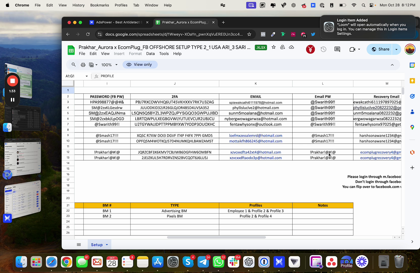 The sheet shared with you will contain essential information such as email addresses, passwords, and recovery details. Make sure to note these down for your reference.