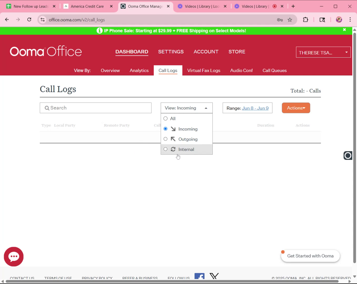 - Log into UMA Admin AccountLog in to the UMA admin account and go to the dashboard to access call logs.