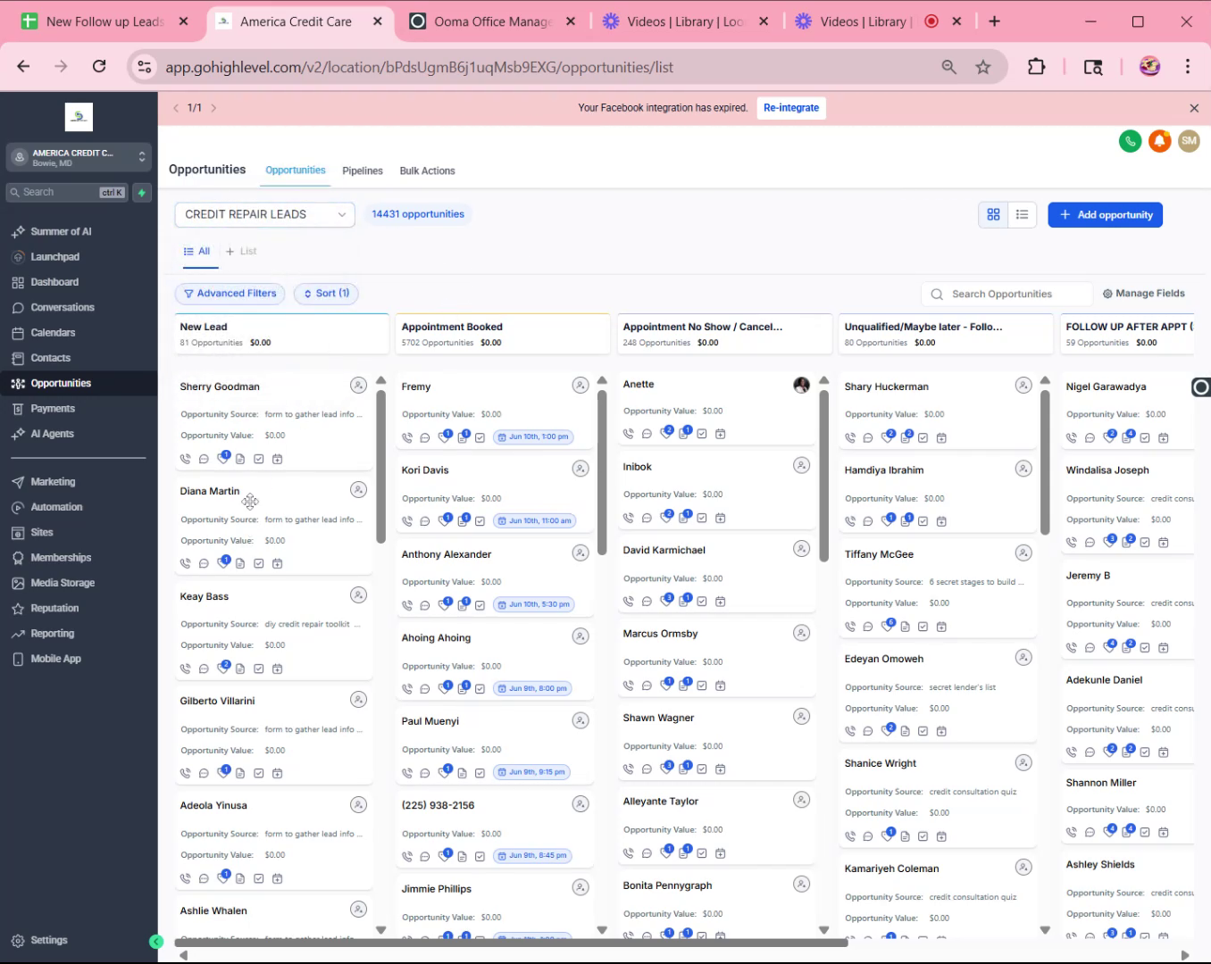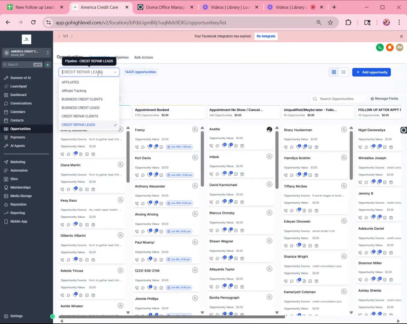 - Select the Correct PipelineUnder the opportunity tab, select the "Credit Repair Leads" pipeline.