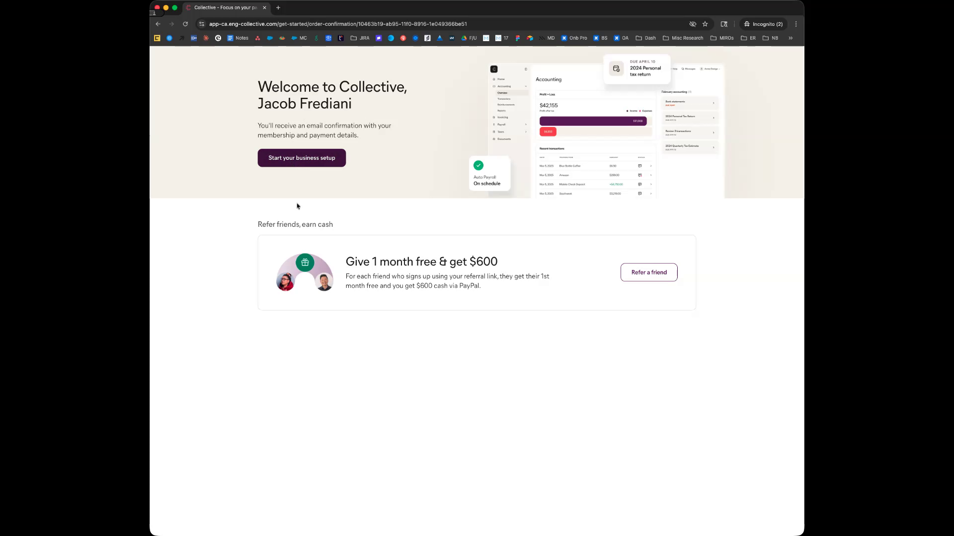 Upon successful payment, you'll arrive at the business setup landing page.