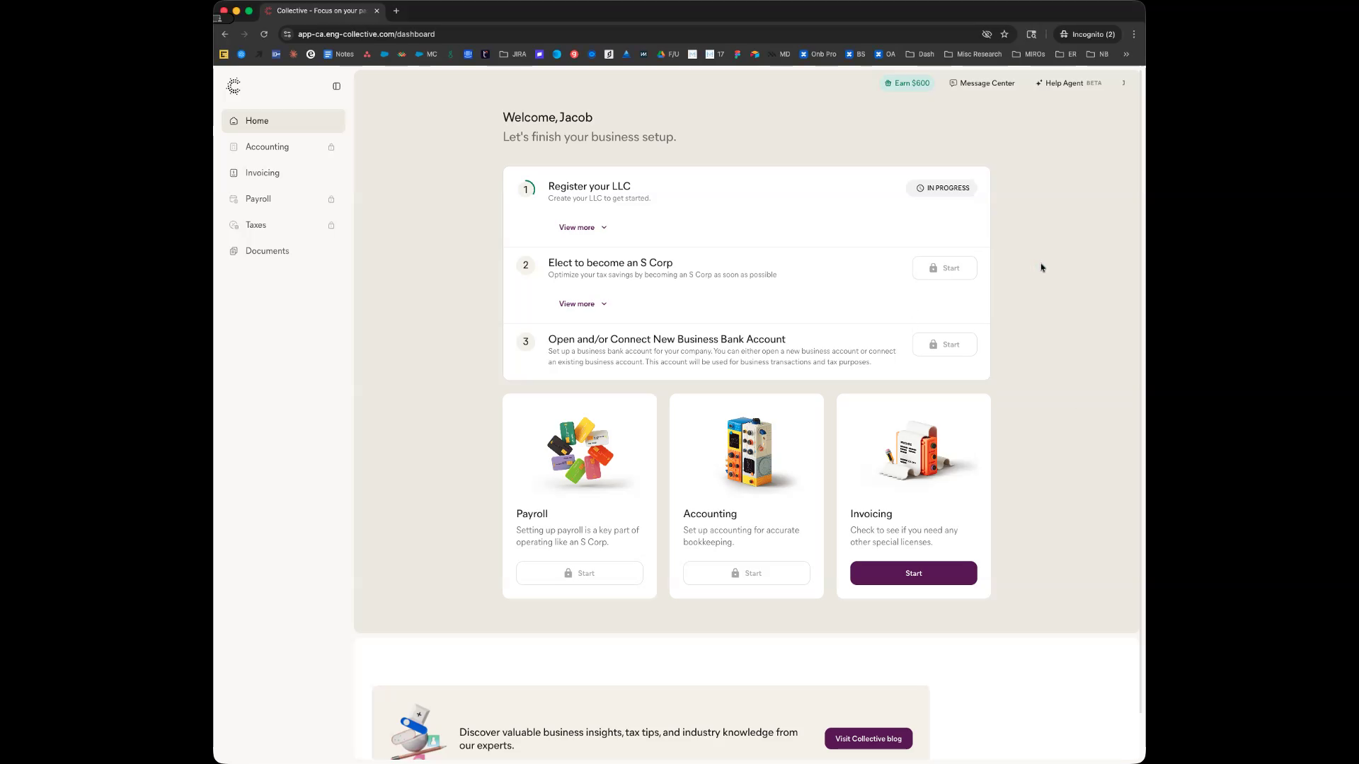 After submitting your application, you will be redirected to your dashboard, where you can view the status of your LLC registration.