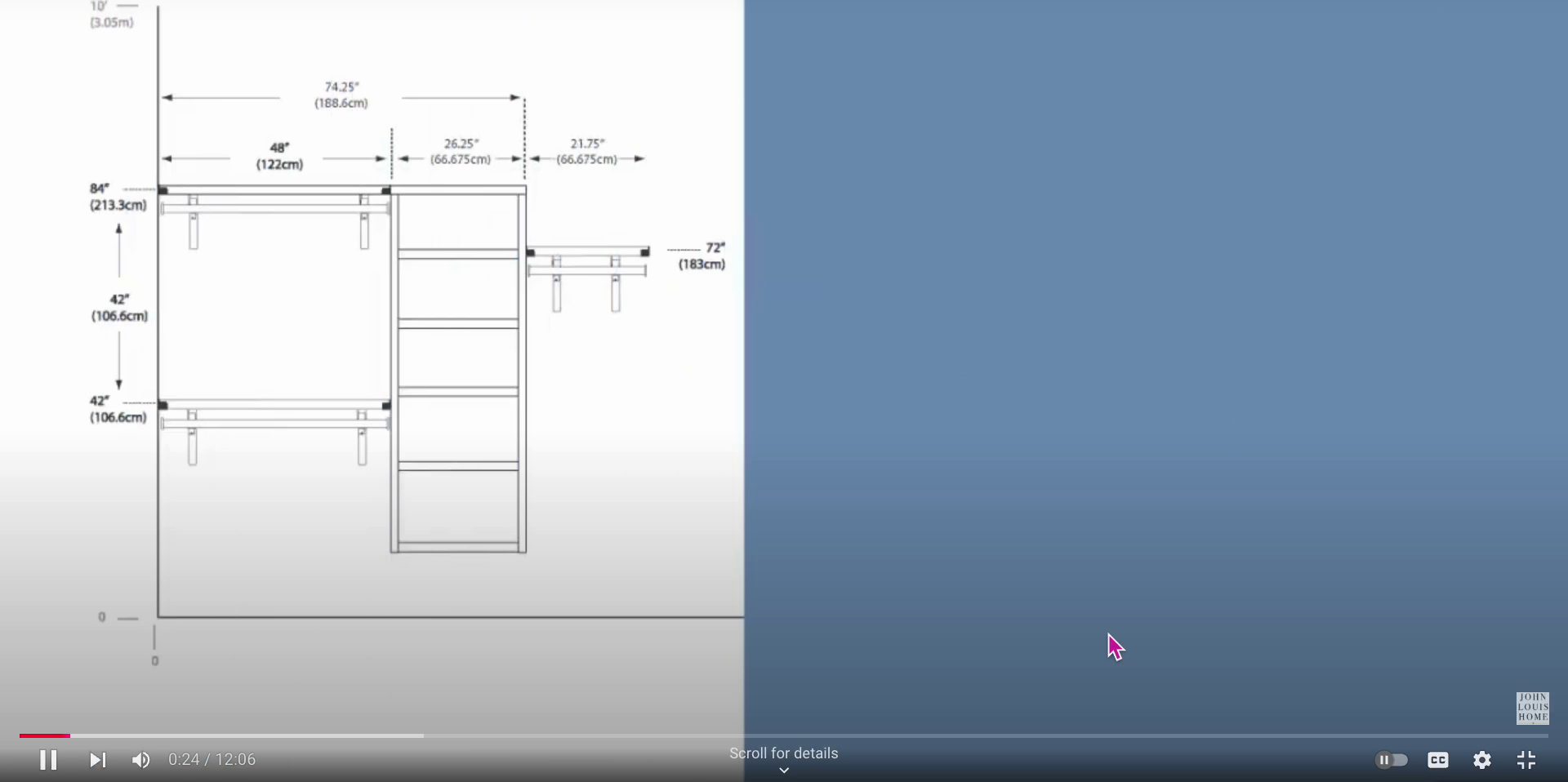Begin by locating your layout in the installation booklet. The double hang is created with two four-foot shelves, while the long hang is achieved by cutting the six-foot shelf to 21 and 3/4 inches. Adjust your cut based on the actual length required.