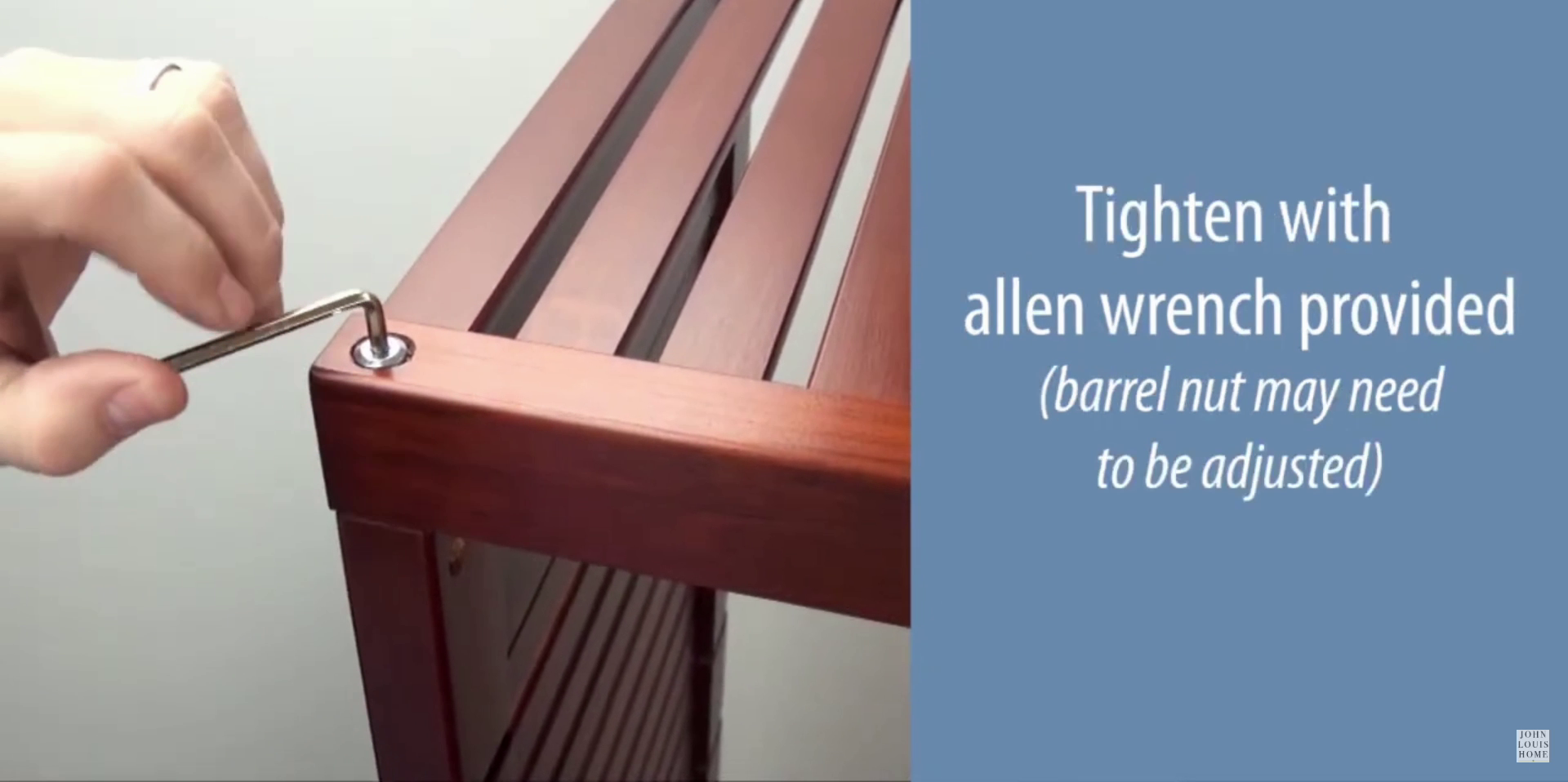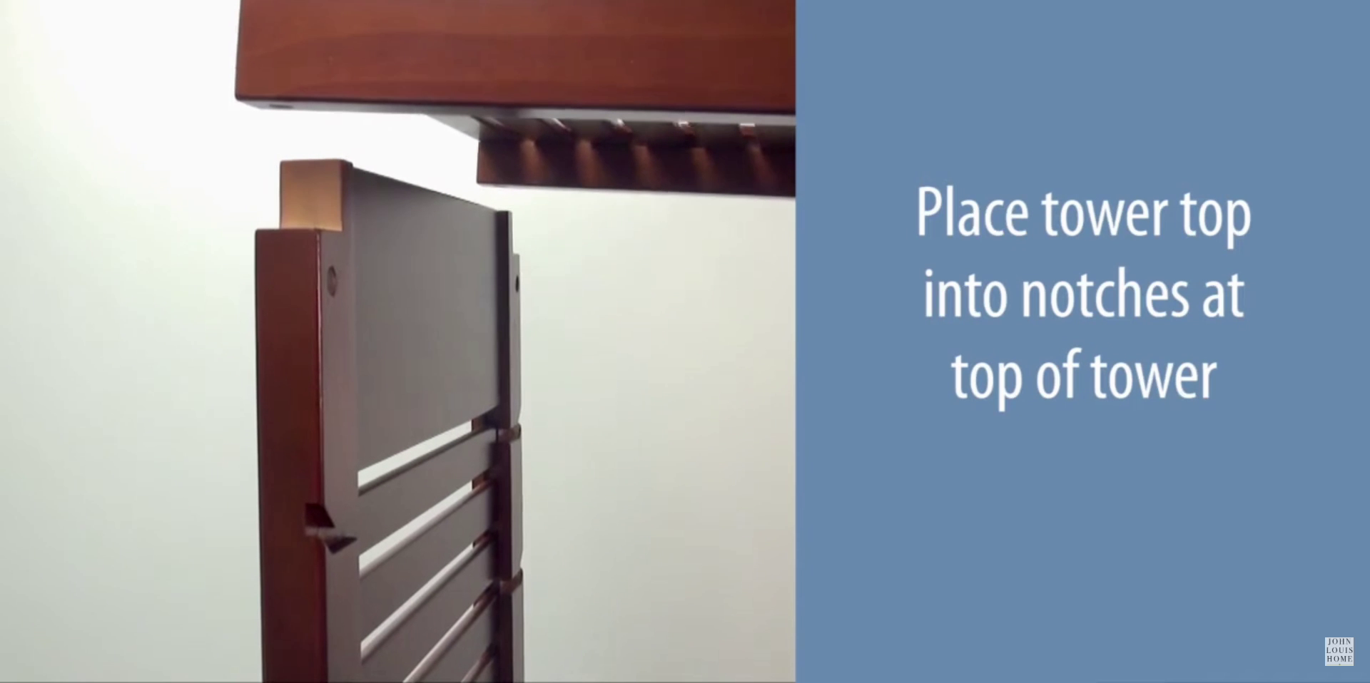 Place the tower top into the notches at the top of the tower. Insert a barrel nut into the tower side and a barrel bolt into the tower top. Tighten with the provided Allen wrench. Adjust the barrel nut as necessary.