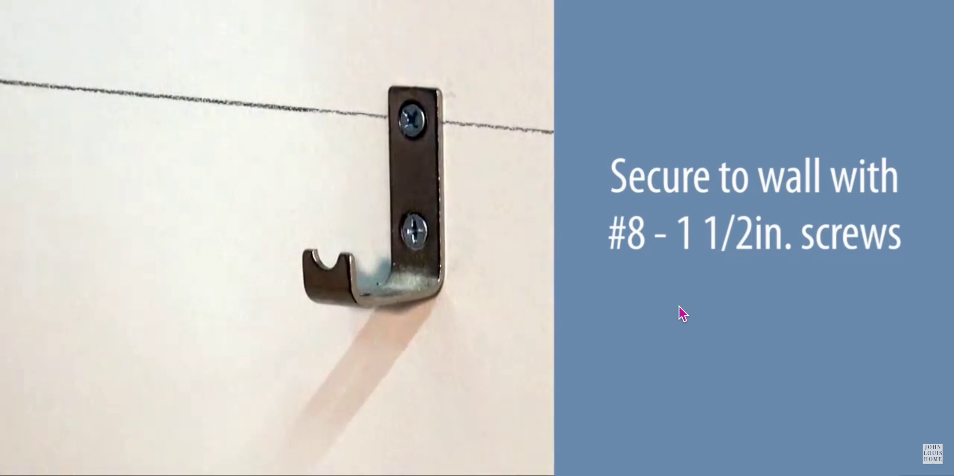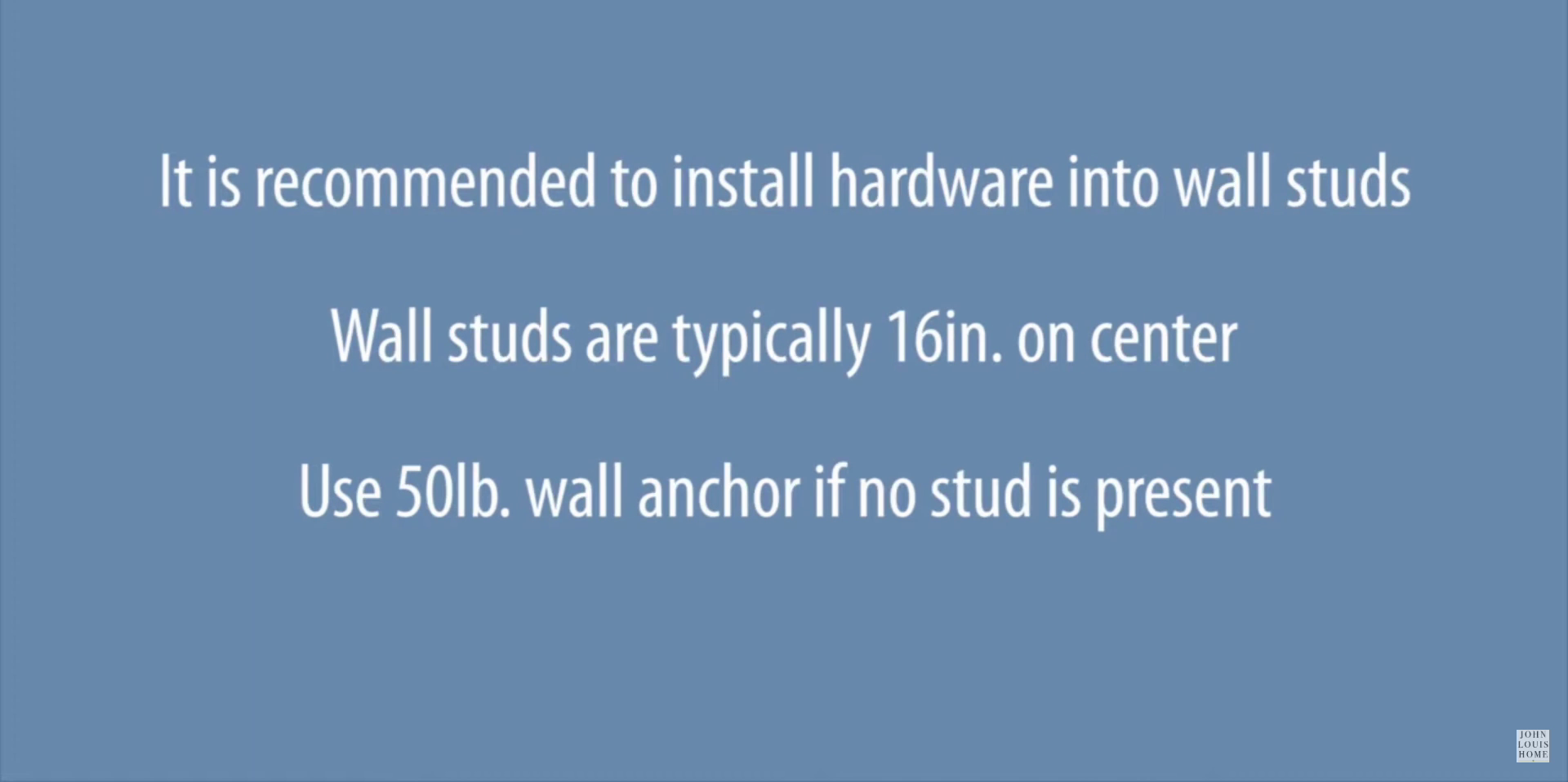 It is recommended to install the hardware into wall studs, which are typically 16 inches on center. If no stud is present, use a 50-pound wall anchor.