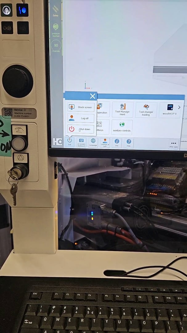 - The CNC machine will go through its shutdown sequence, which takes approximately three to five minutes. Wait until the process is complete.