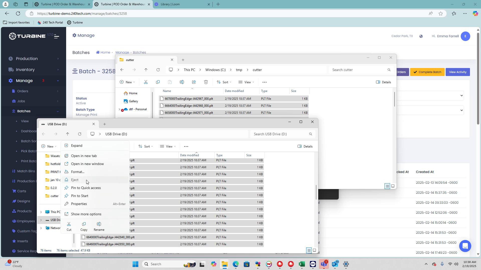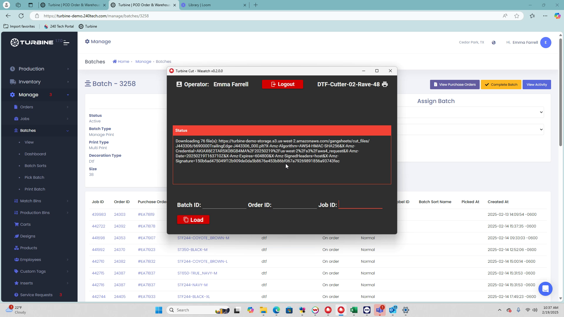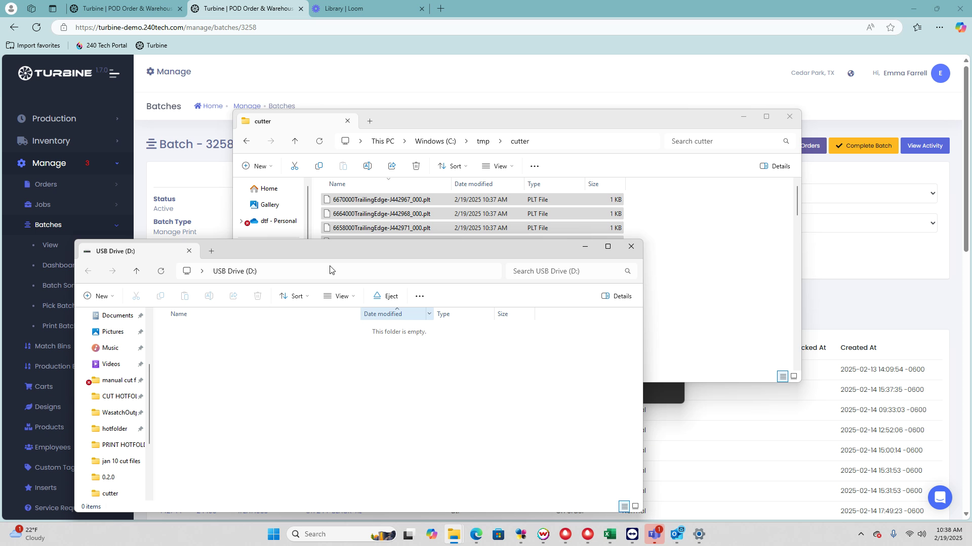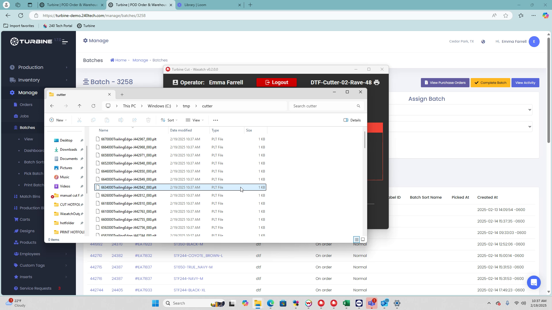 This guide provides a step-by-step process for cutting printed batches using the Turbine Cut app. By following these instructions, you will be able to efficiently load, transfer, and execute cut files for your batch, ensuring a smooth cutting process.
