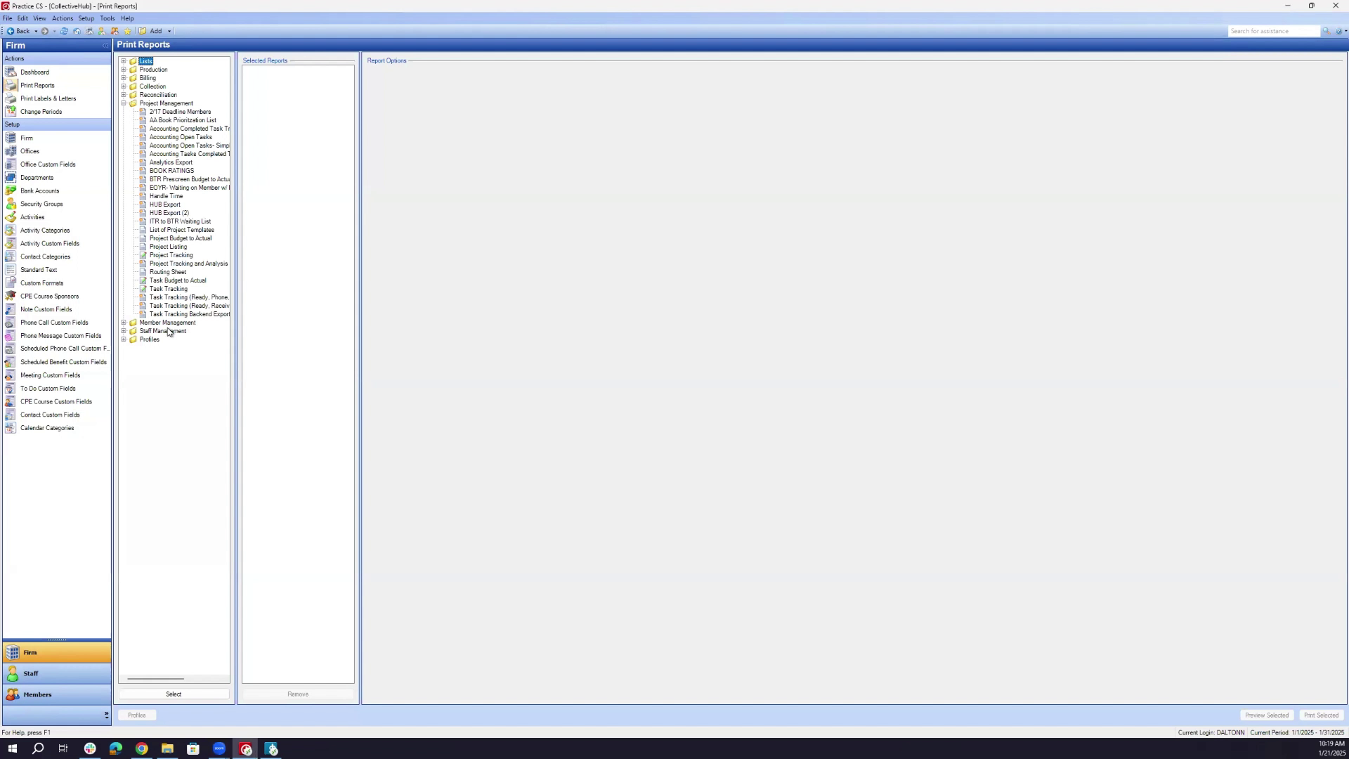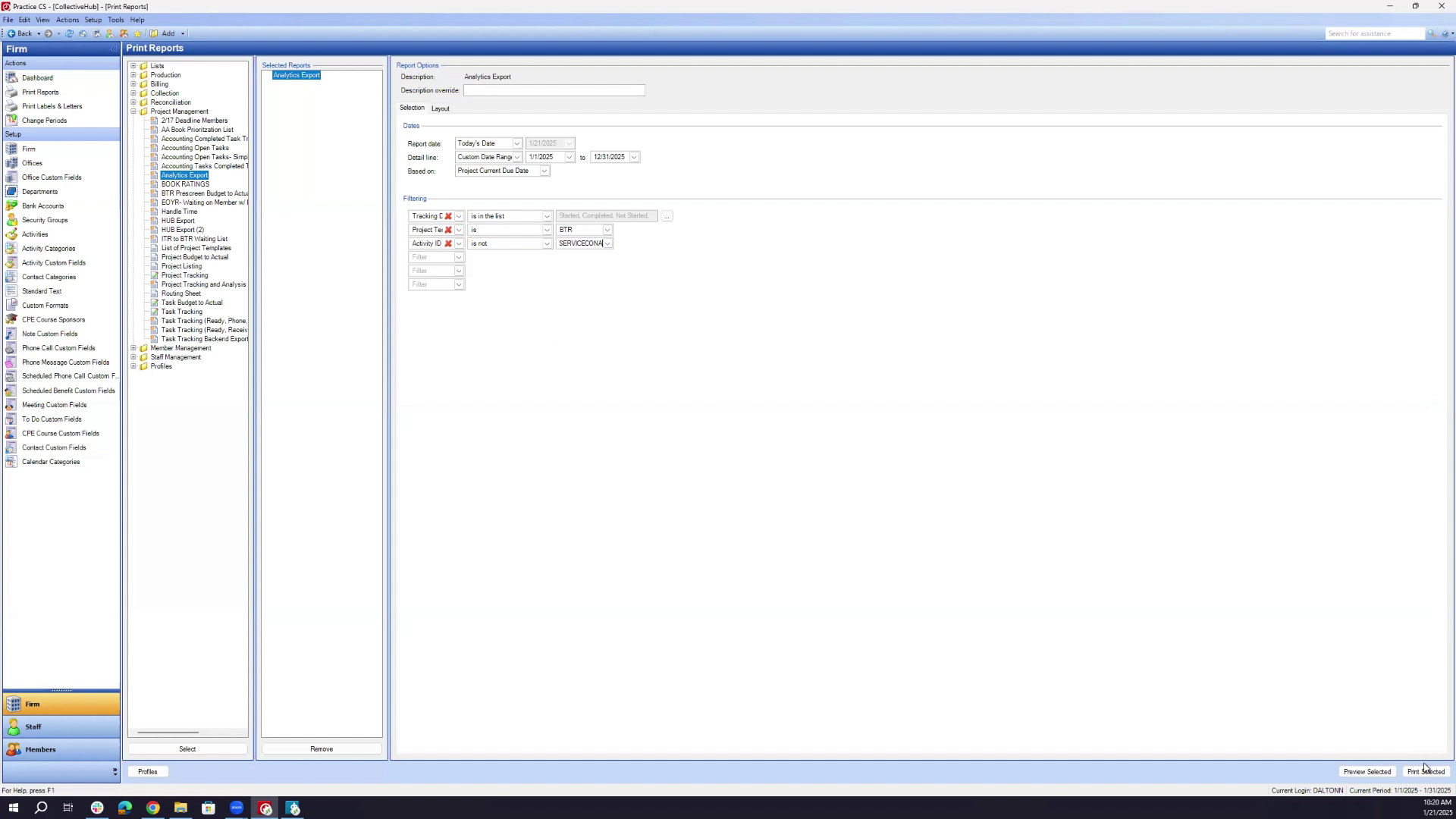 - Go to the print reports section and select the analytics report under project management.
