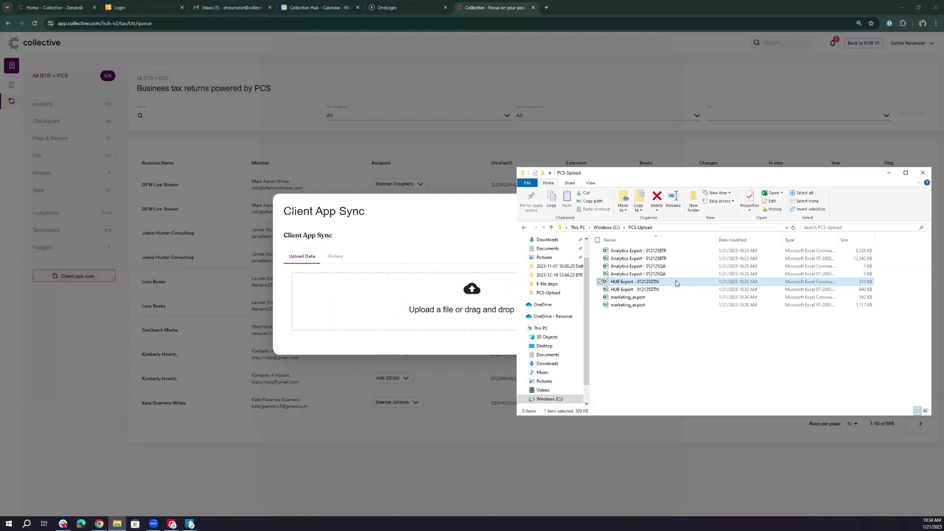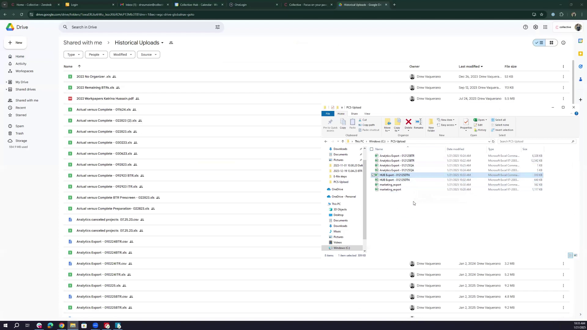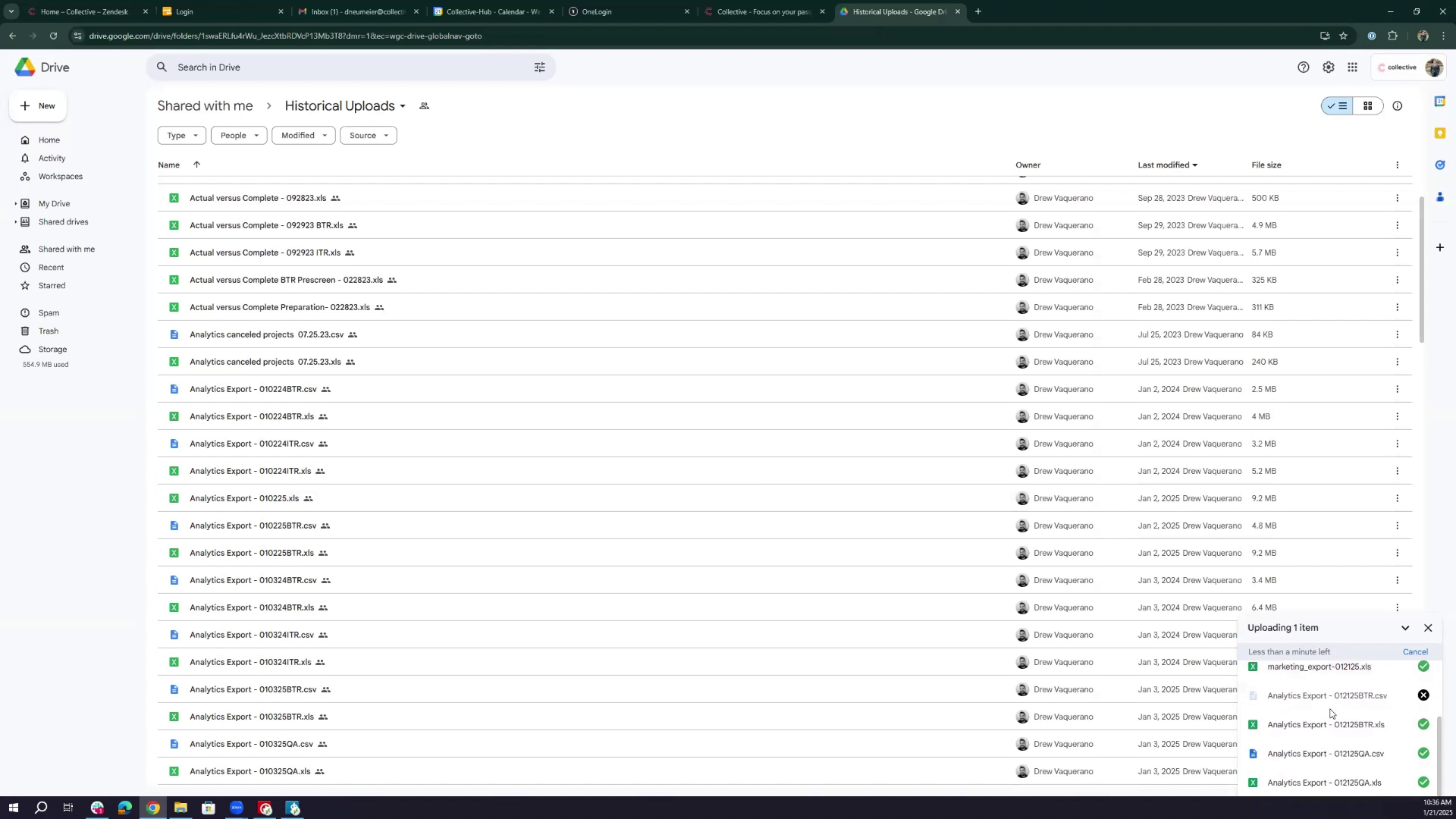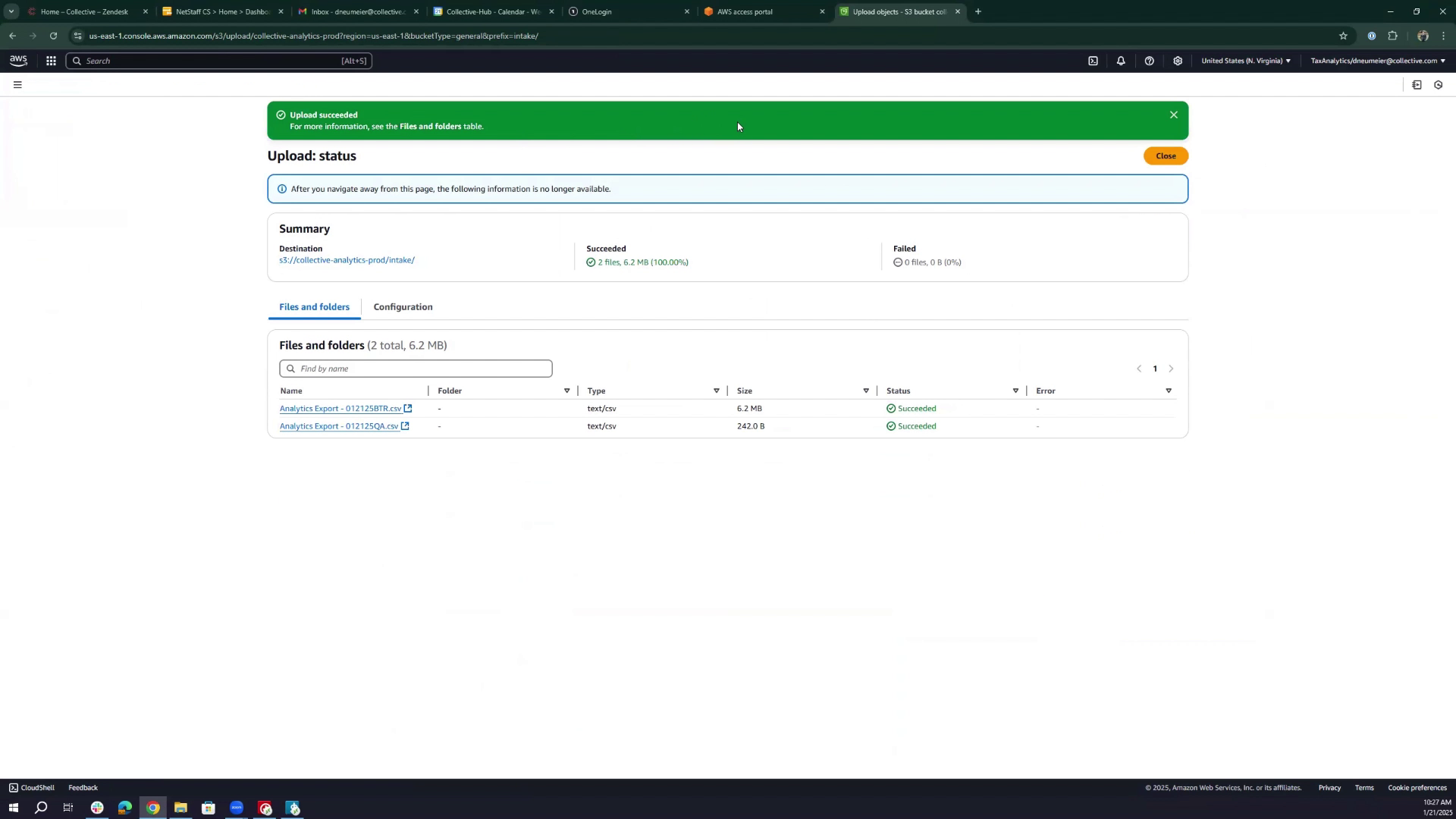 - Drag and drop the BTR and QA CSV files into the "collective-analytics-pod" intake folder. Confirm successful upload.