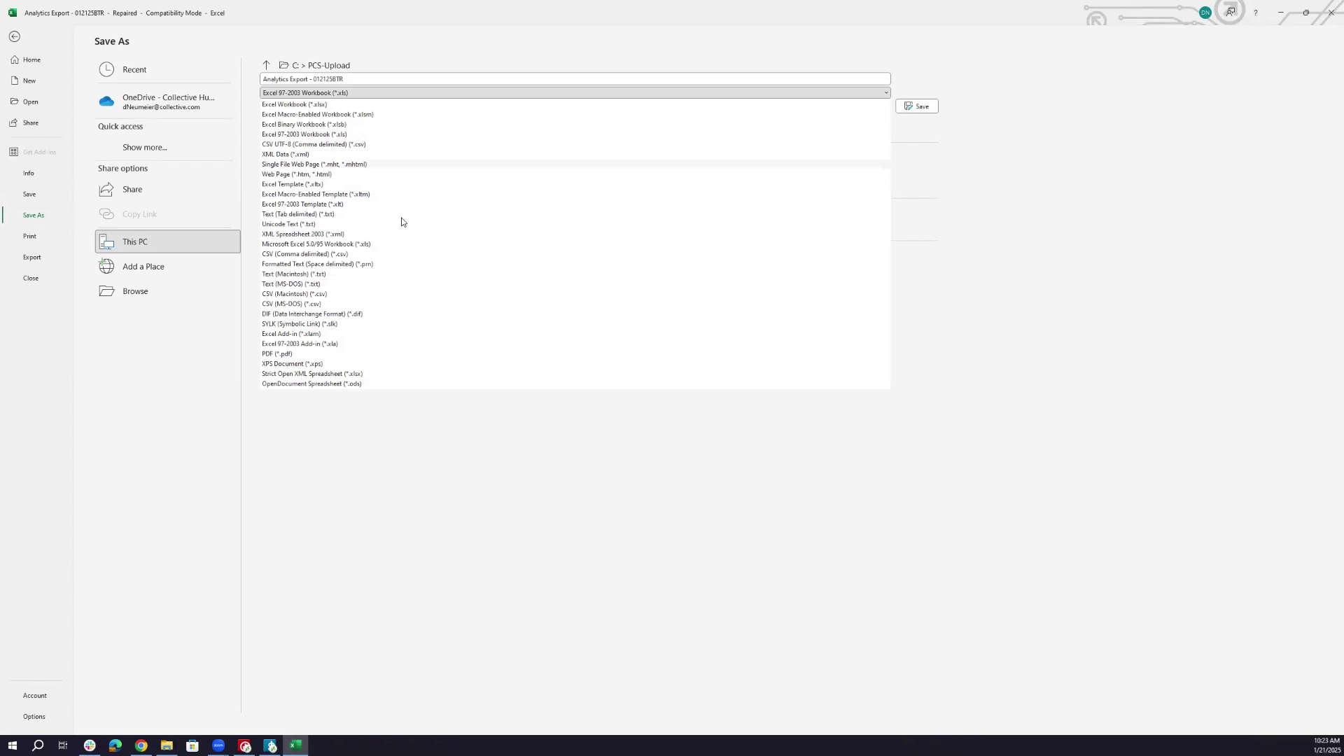 - Click 'Print Selected' and choose to output to a file in Excel under the C drive's PCS upload folder.