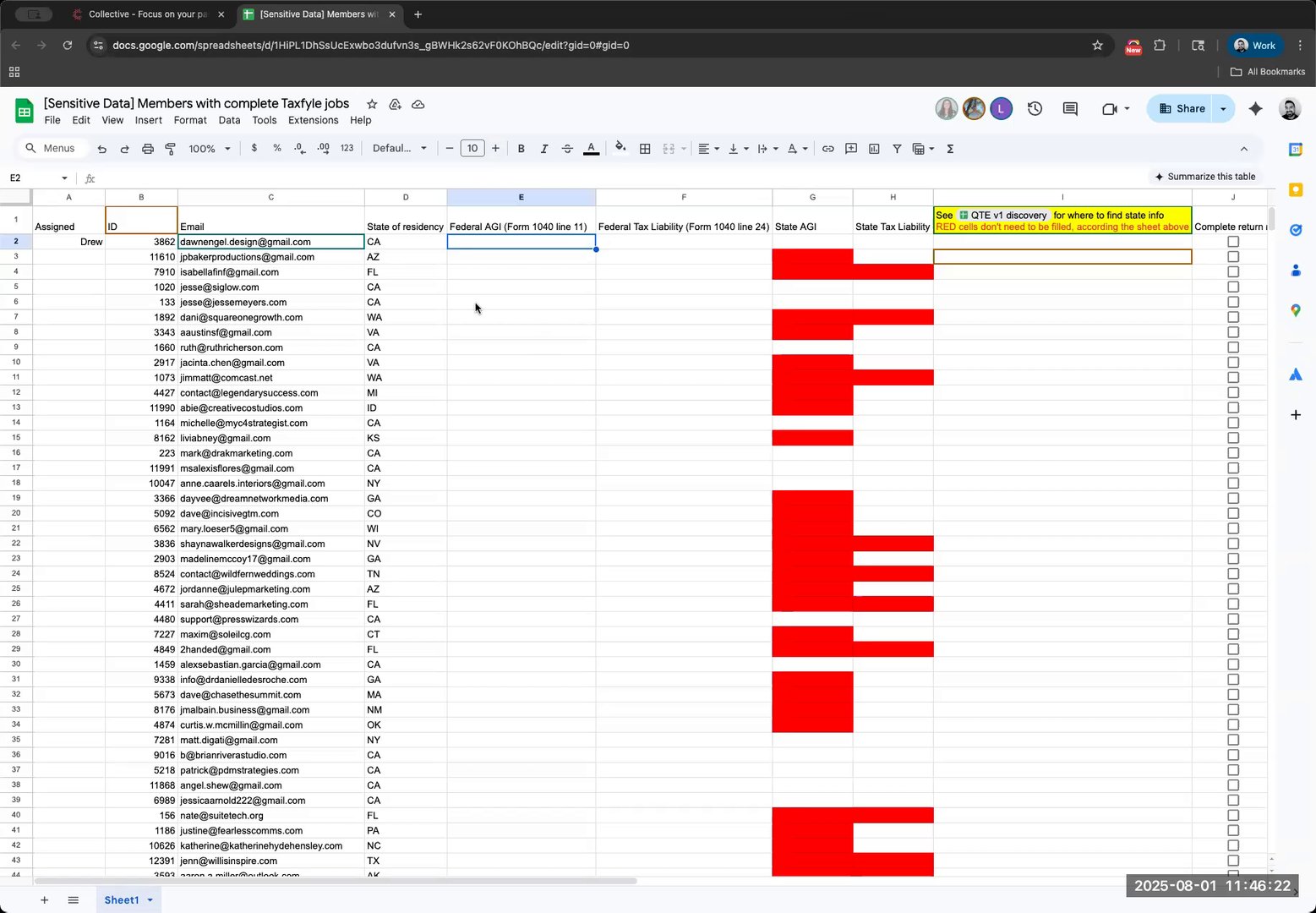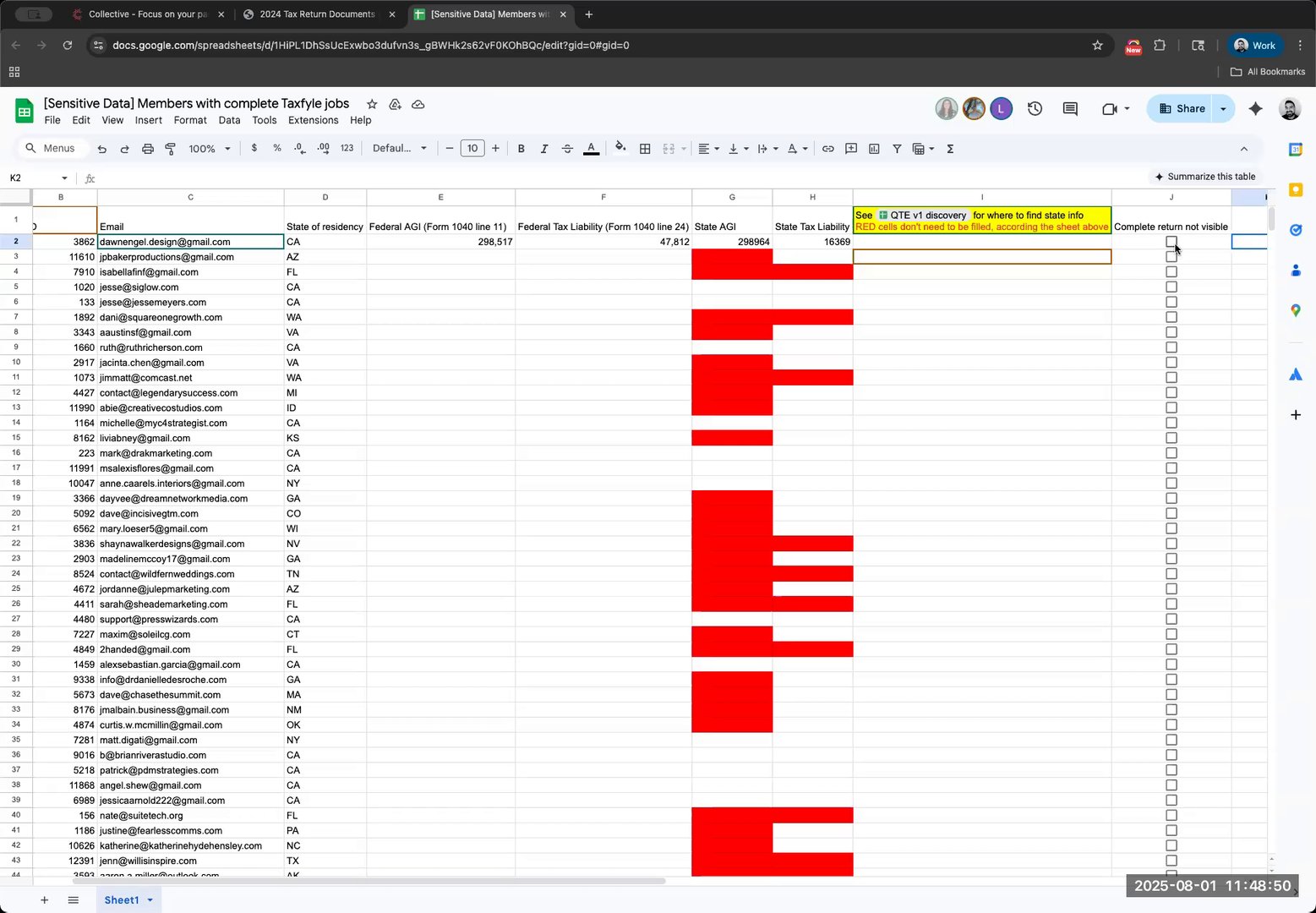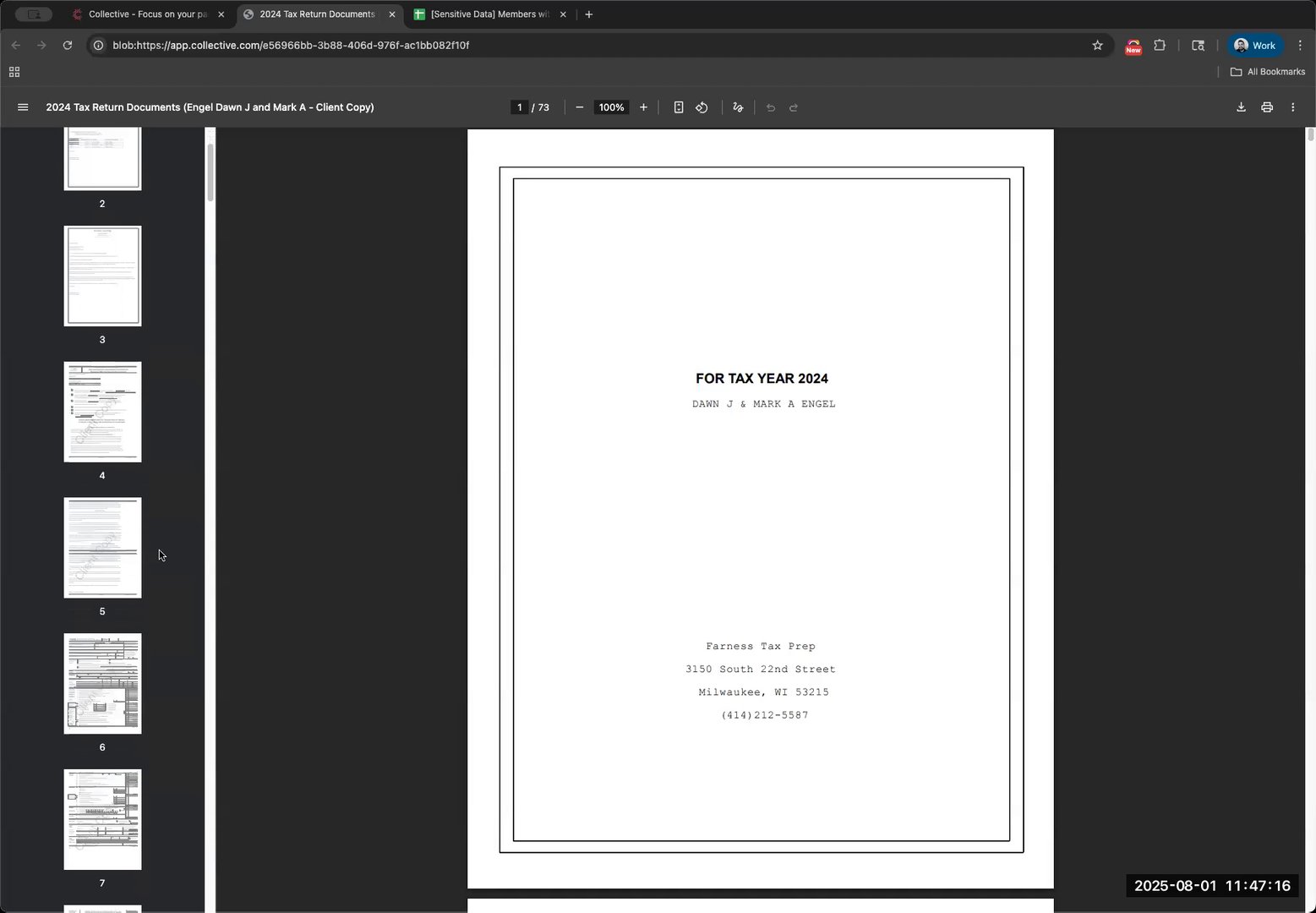 Log into Collected.com, use the search field to locate the member based on the email provided in the engineering sheet. Navigate to documents and filter by "Individual Tax Return Final" to locate the necessary documents.