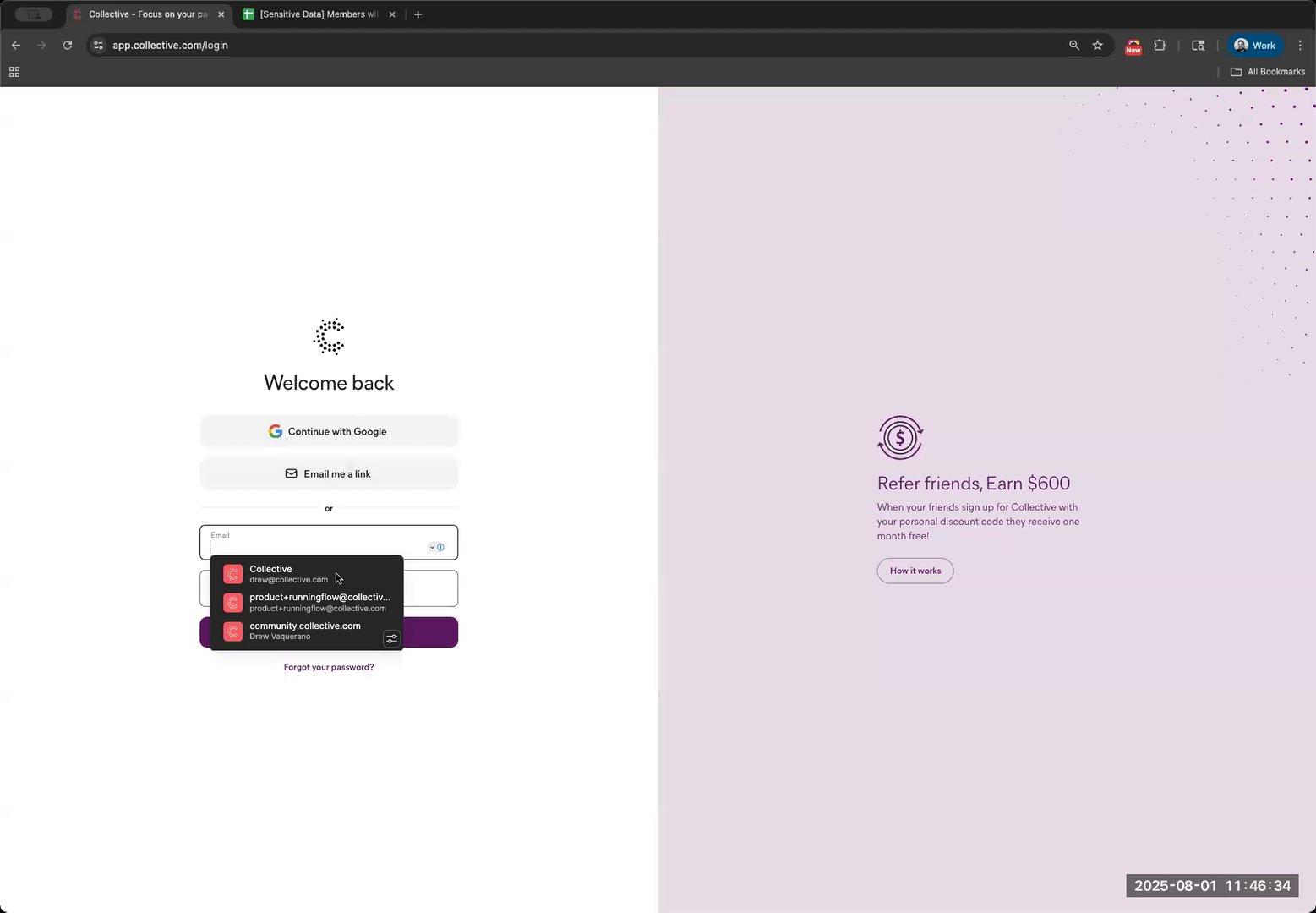 Log into Collected.com to continue the process. Ensure you have the correct credentials to access the necessary documents.