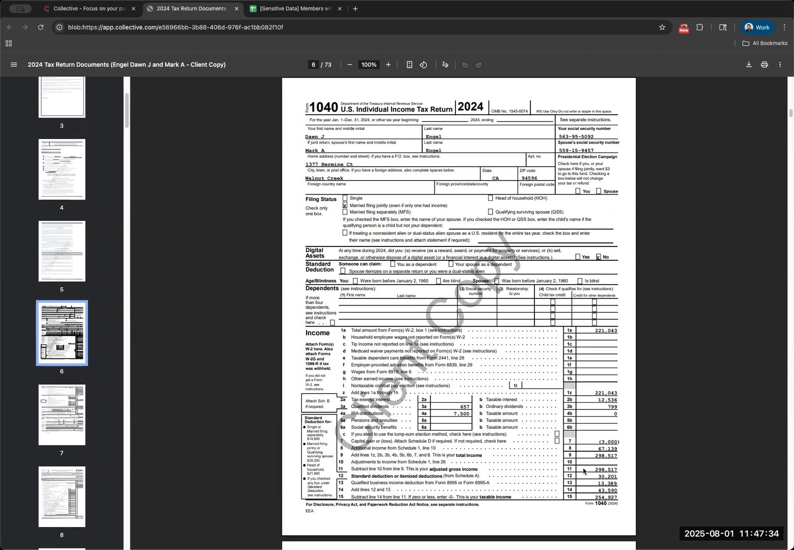 - View and Extract Data: Open the document and focus on page two of the 1040 form. Extract the following key data: