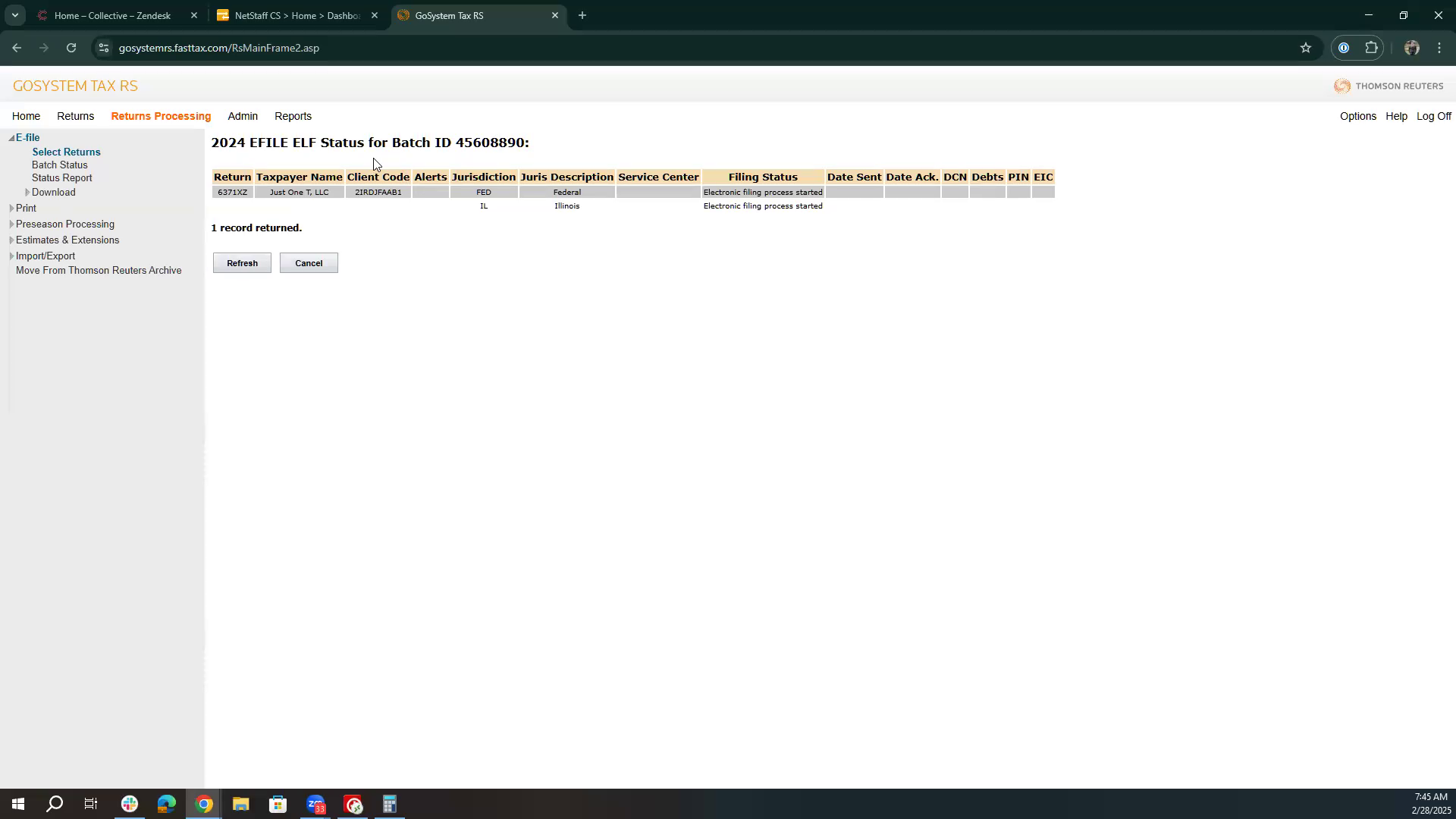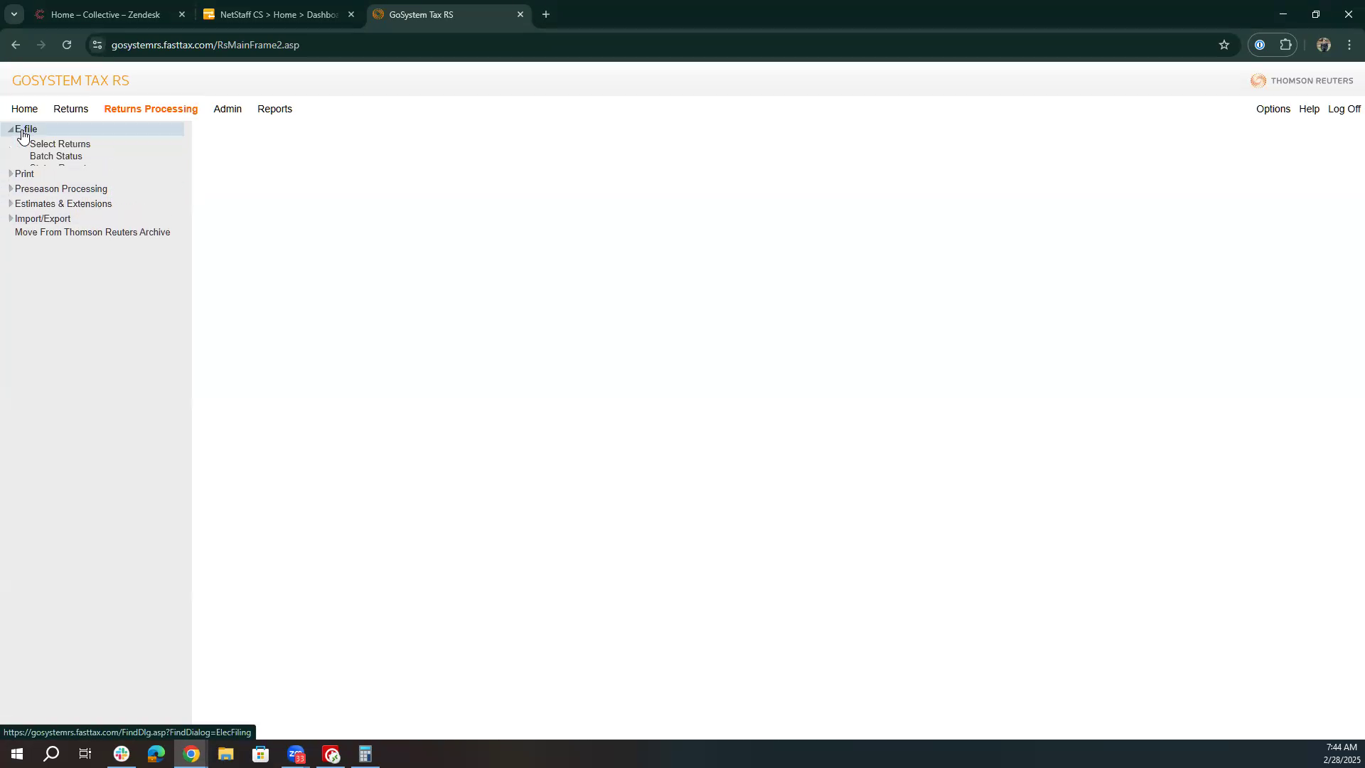 Navigate to the Go Systems Tax platform and access the return processing section.