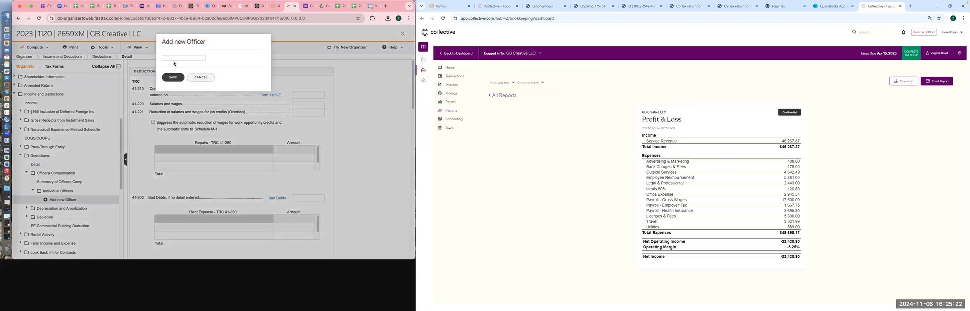 - Make sure to include details for the officer connected to the shareholder, as this is important for compensation tracking.
