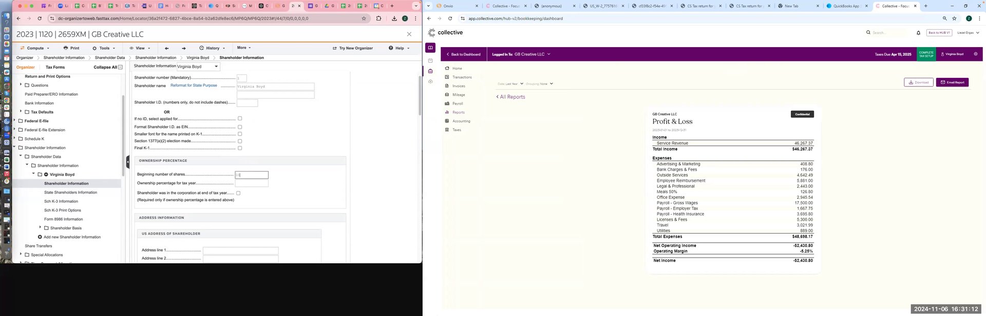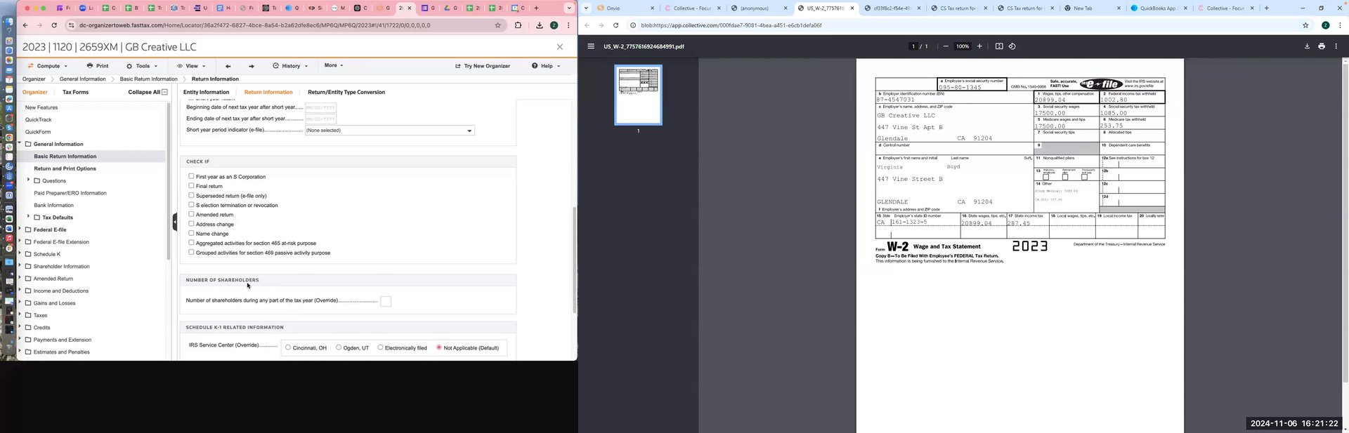 - Add K-1 information by navigating back to the shareholders section and inputting the necessary details.