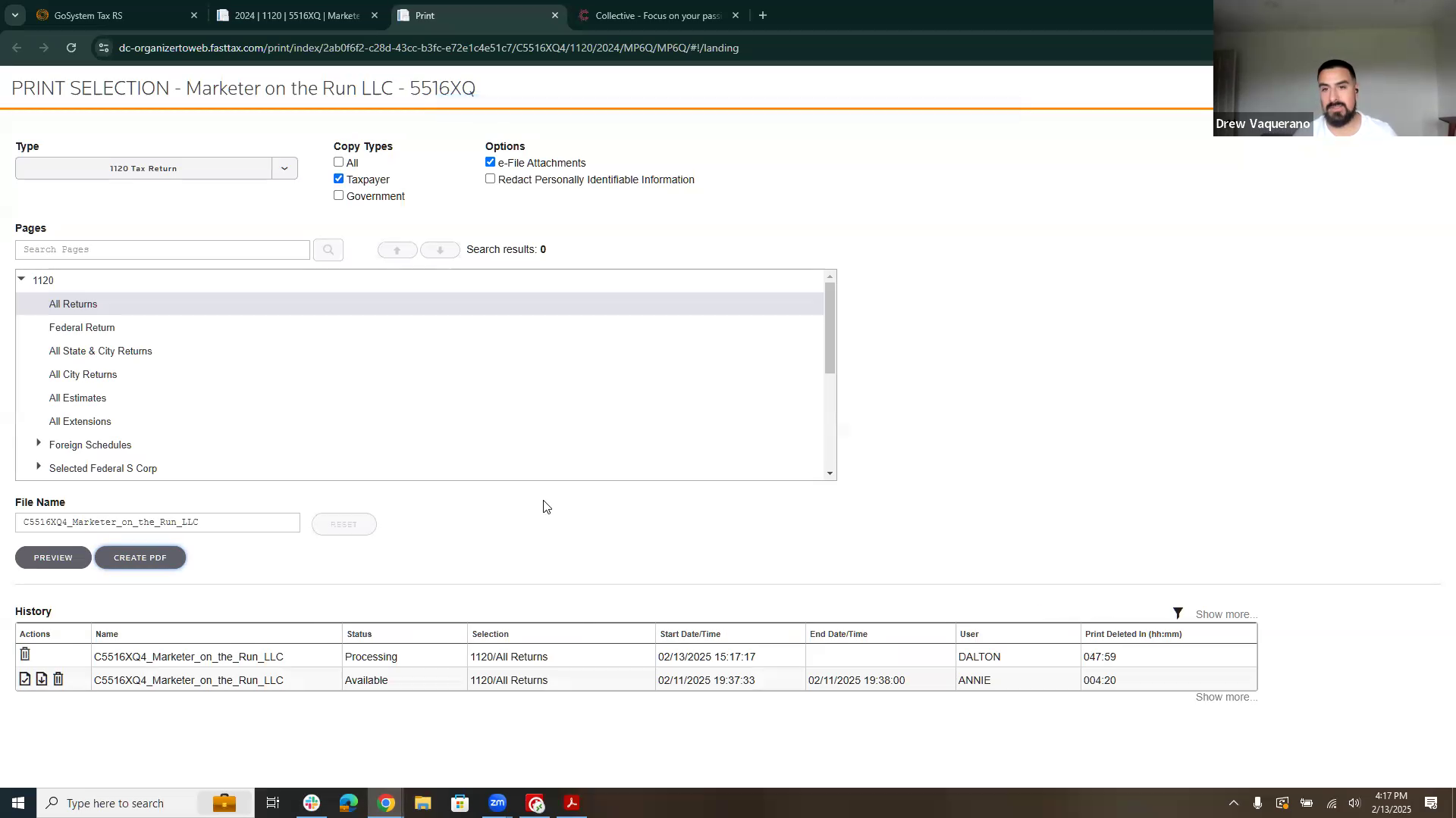 - Go to 'Print', unselect all copy types except 'Taxpayer'.