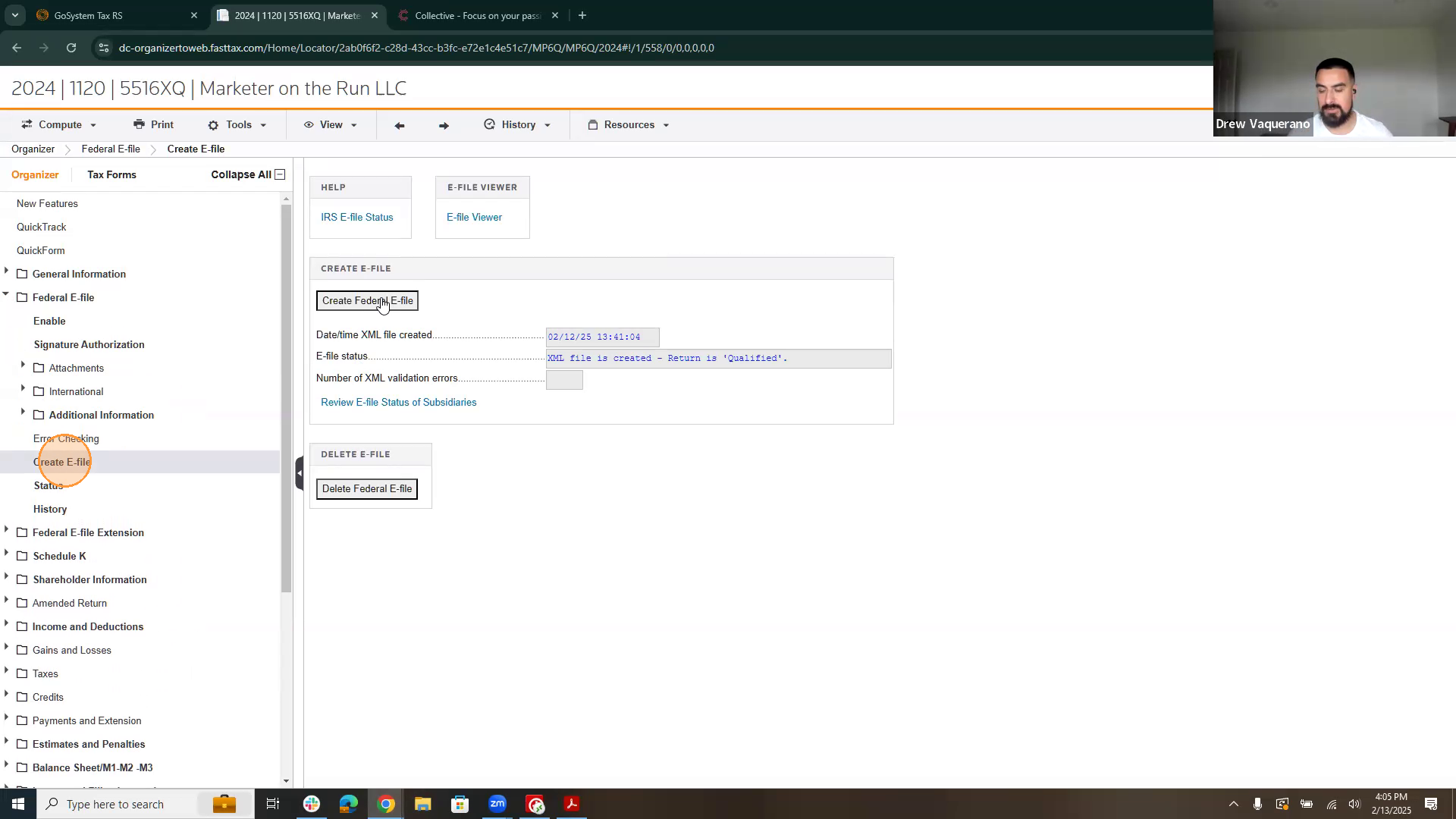 - Scroll to 'Create e-file' and select 'Create Federal e-file'.