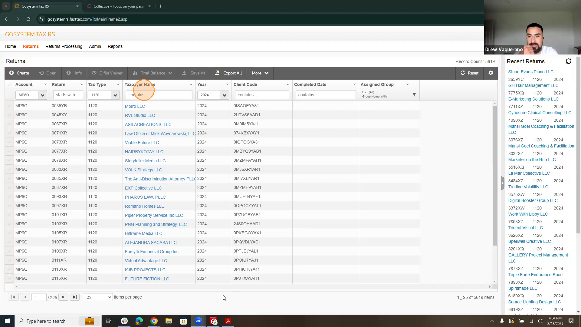 - Navigate to the 'Return' tab to look up the taxpayer for whom you will be printing the return.