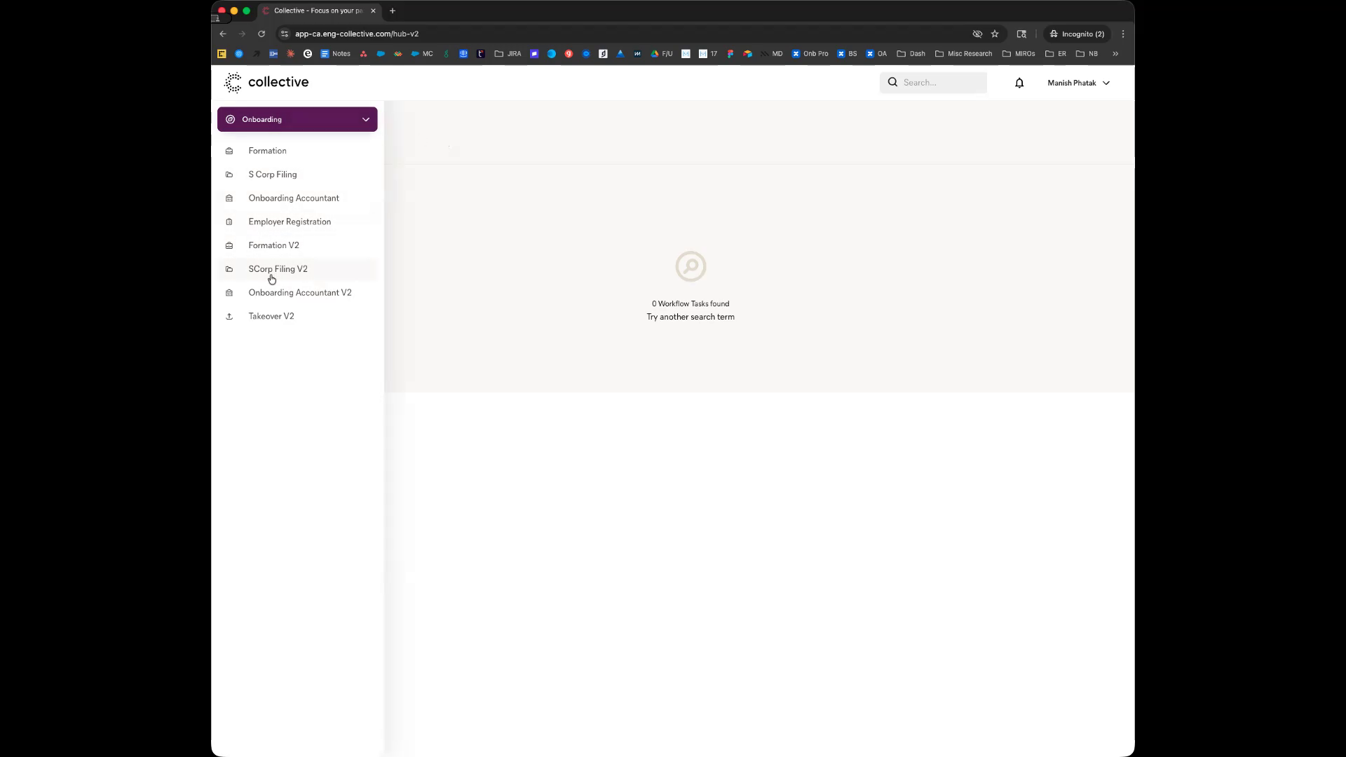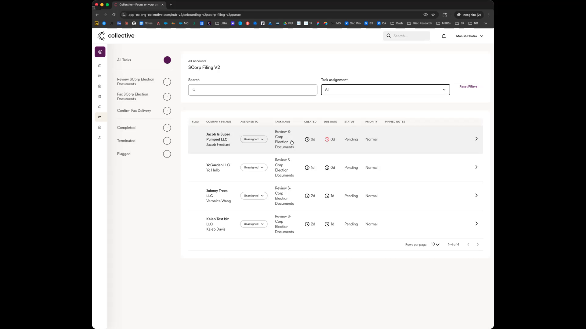 On the left-hand side, navigate to "S Corp Filing v2" to find the task for reviewing the S corporation election documents.