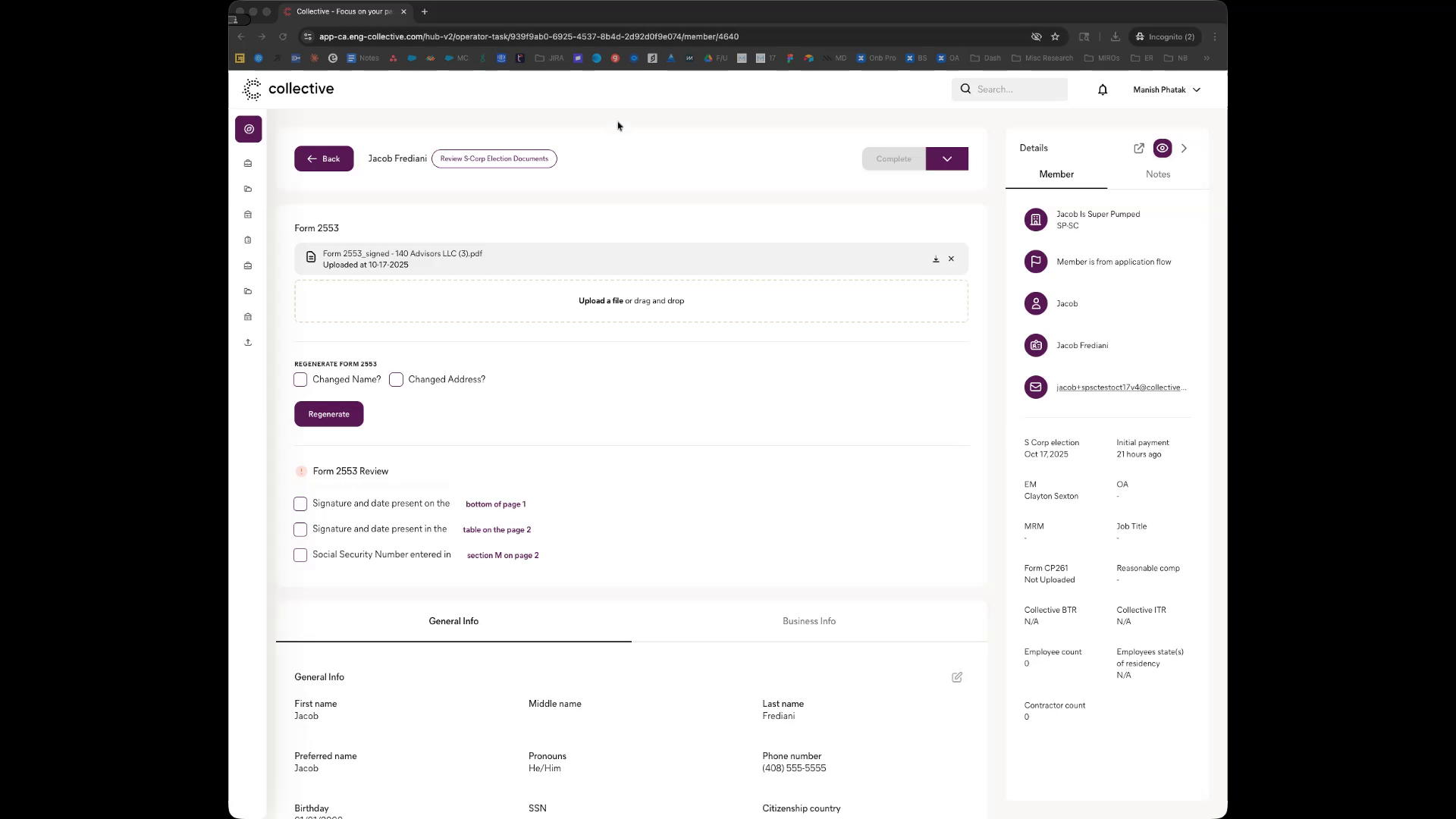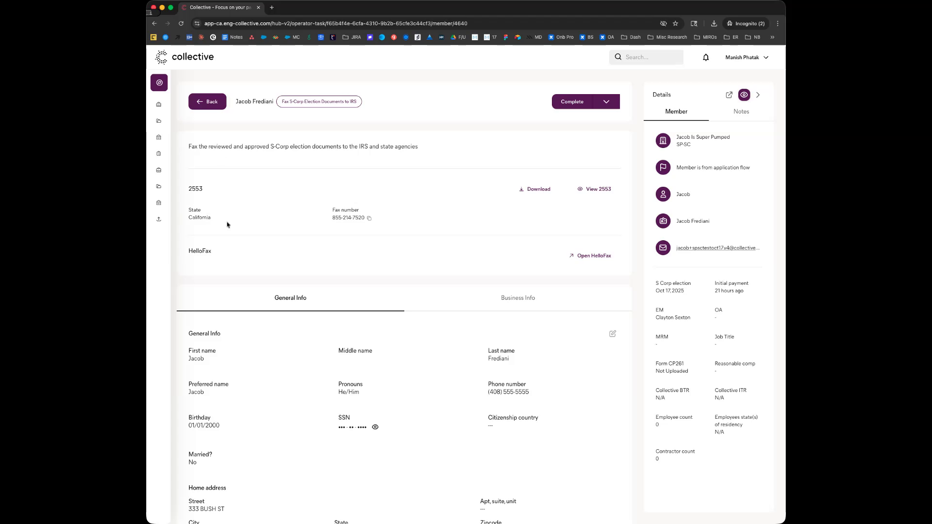 Members can log into the dashboard to confirm that the 2553 form has been submitted by Collective.