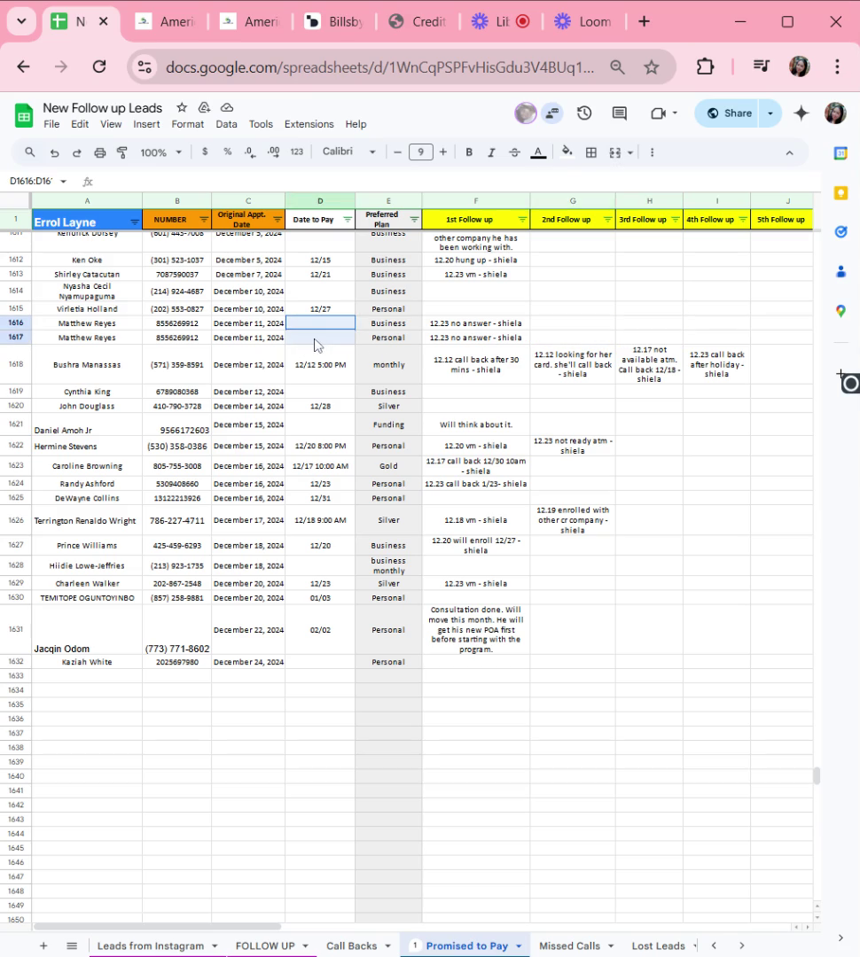 If you have available time (30 minutes to one hour), initiate the "promise to pay" task. This involves calling previous leads to see if they are ready to start their credit repair enrollment.