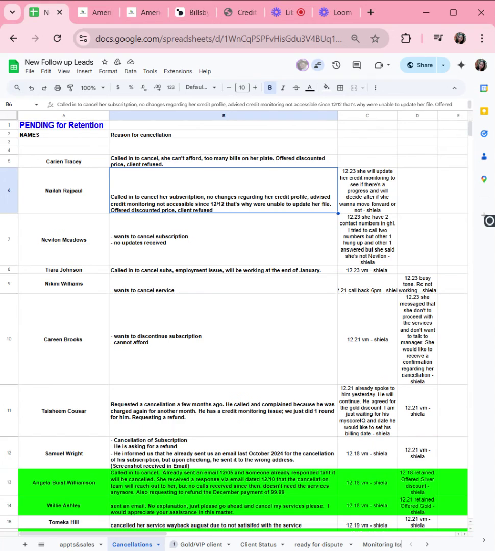In addition to follow-ups, handle cancellation requests from clients, aiming to retain them when possible.