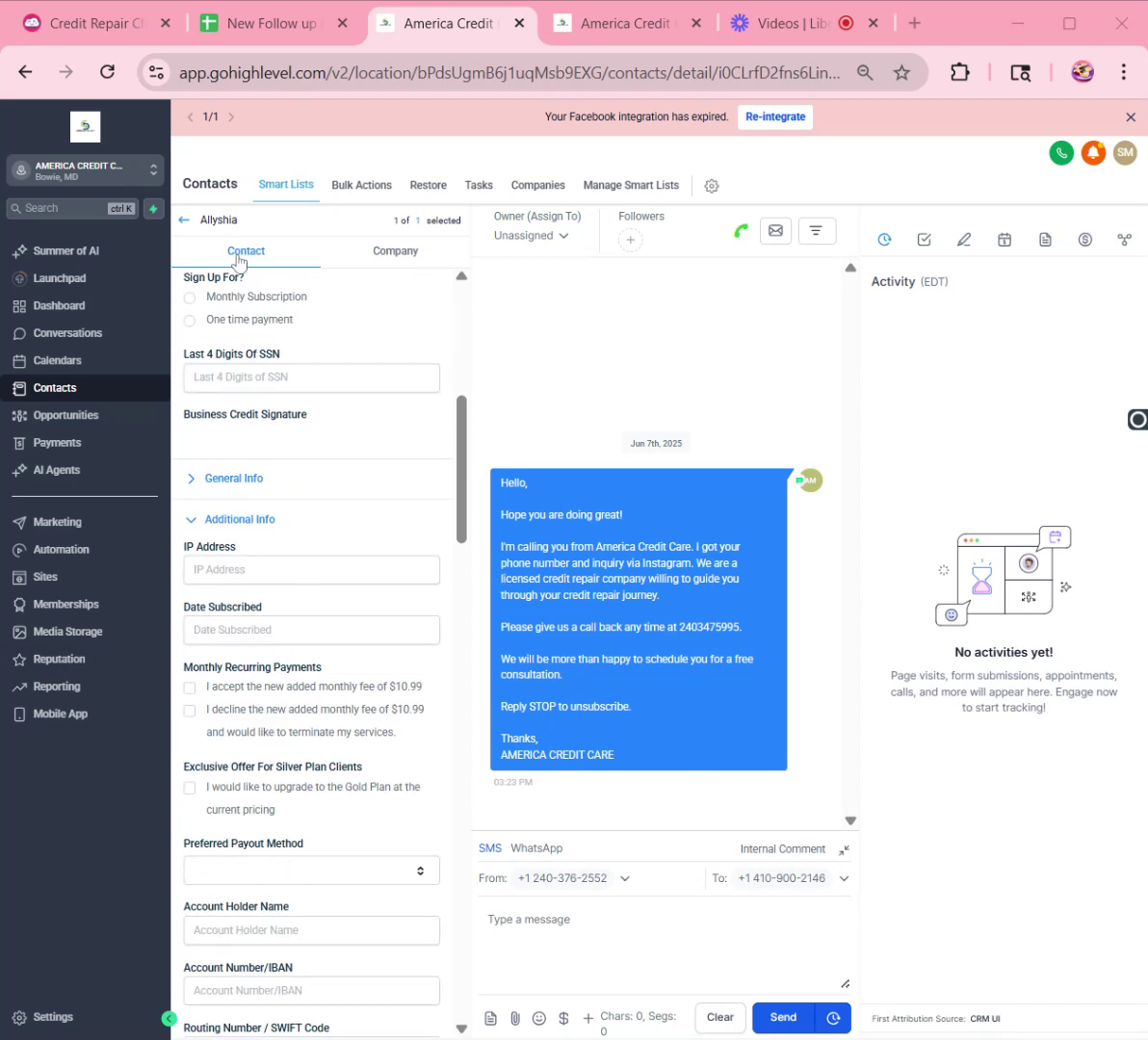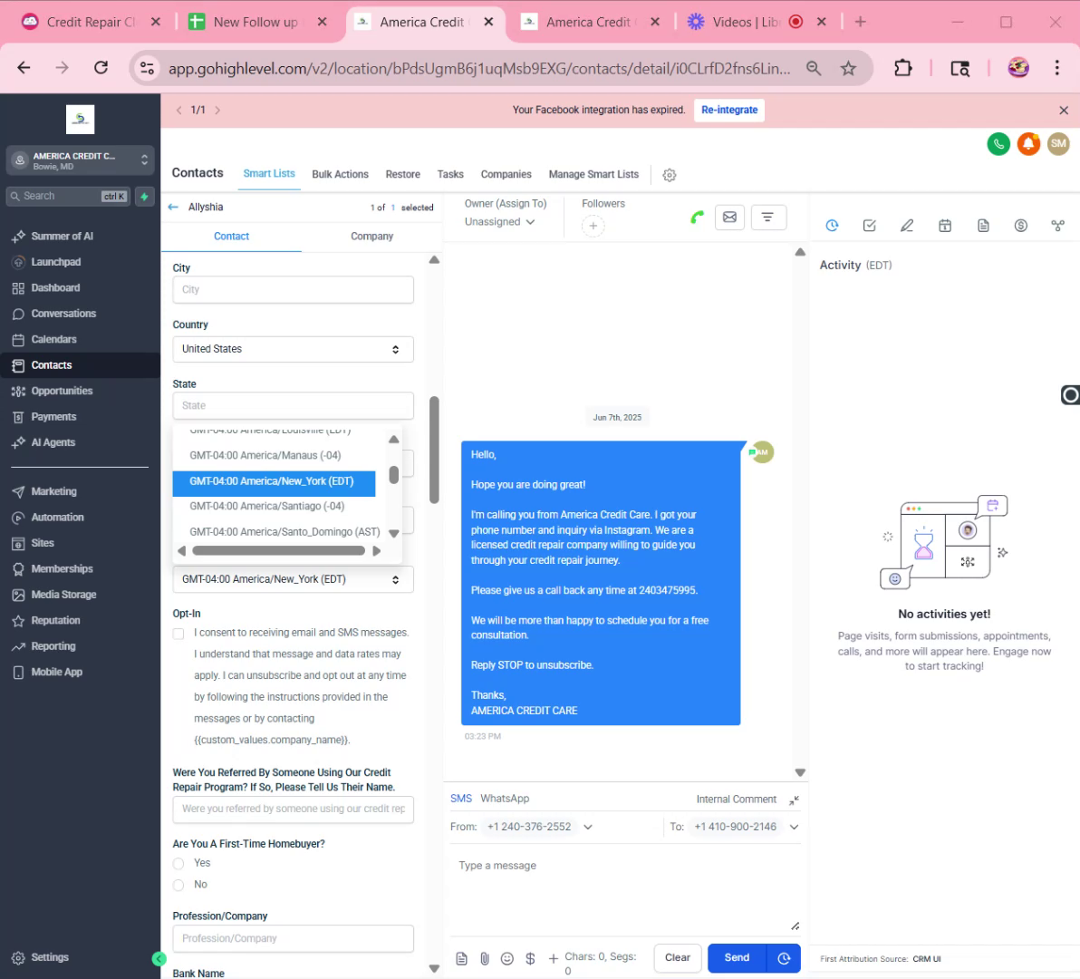 After setting up the calendar, update the lead’s information in the GHL system. Confirm and update their contact details, including their name, email, and time zone.\