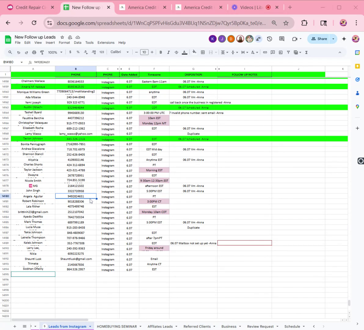 UPDATE THE EXCEL SHEET- WRITE IN THE DISPOSITION TAB “DATE -SCHEDULED- NAME”. FINALLY HIGHLIGHT GREEN.