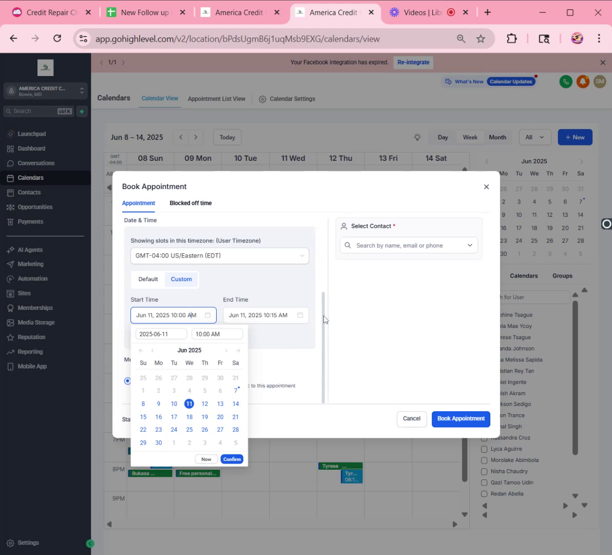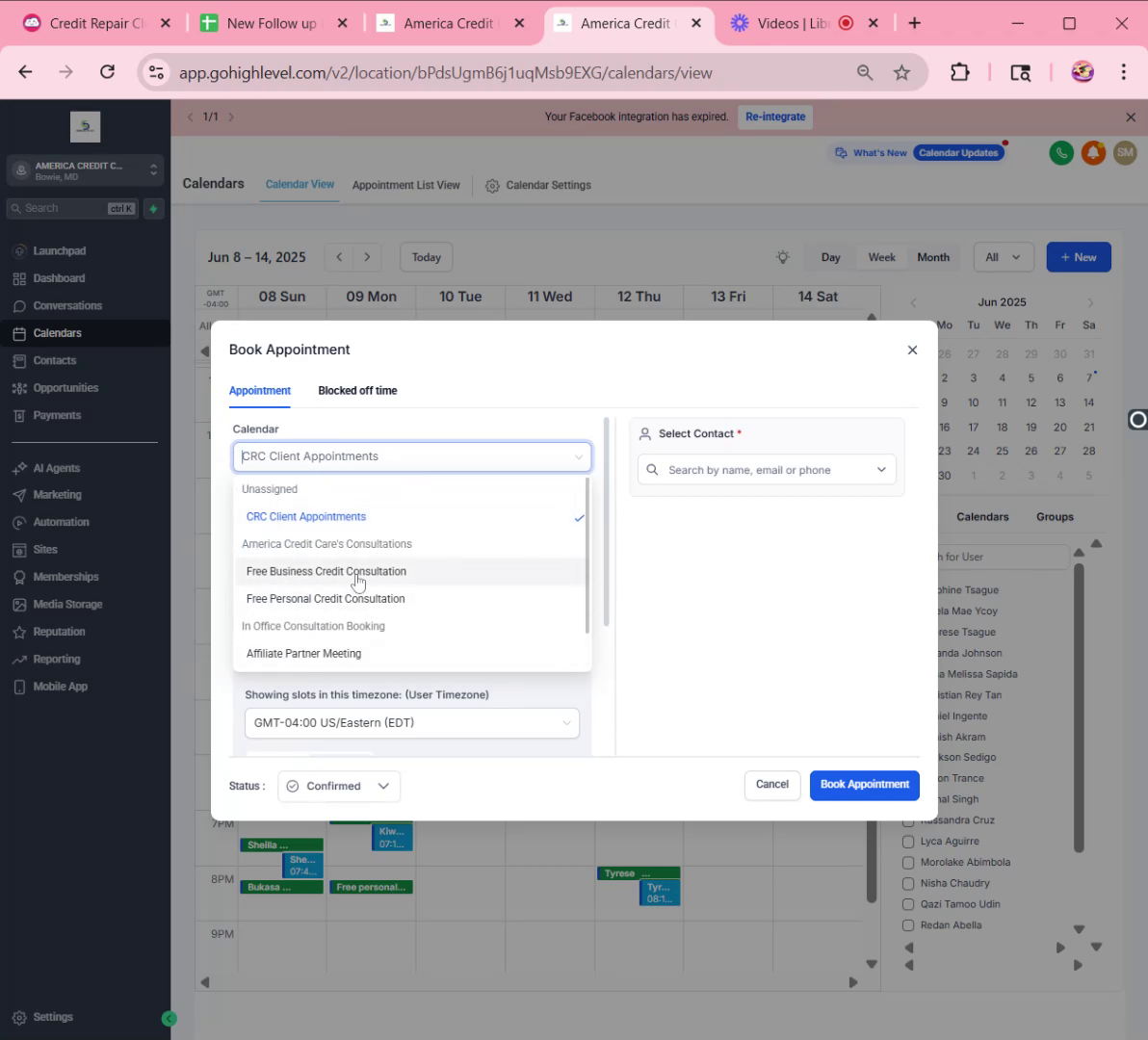 Once availability is confirmed, add the appointment to the calendar via the GHL system. Choose the correct type of consultation and ensure the date and time are accurate.