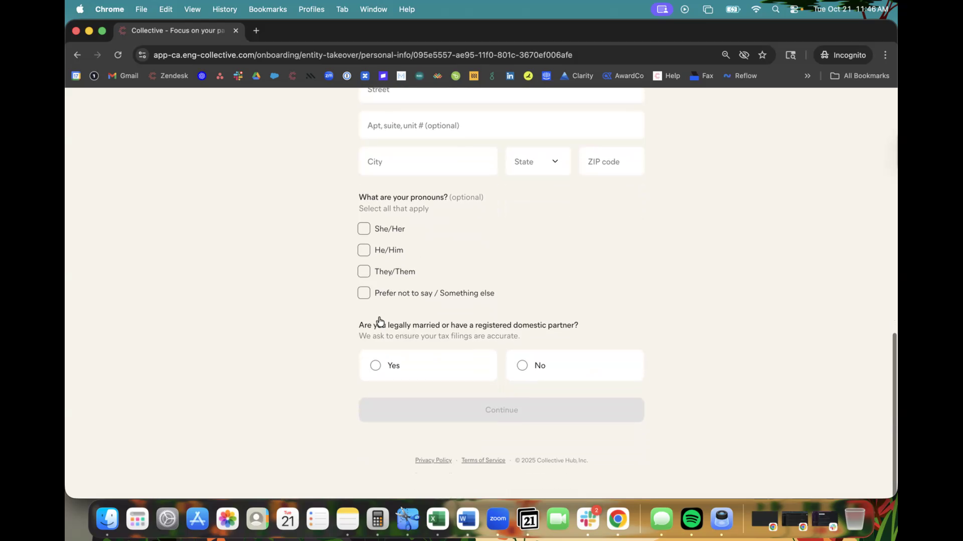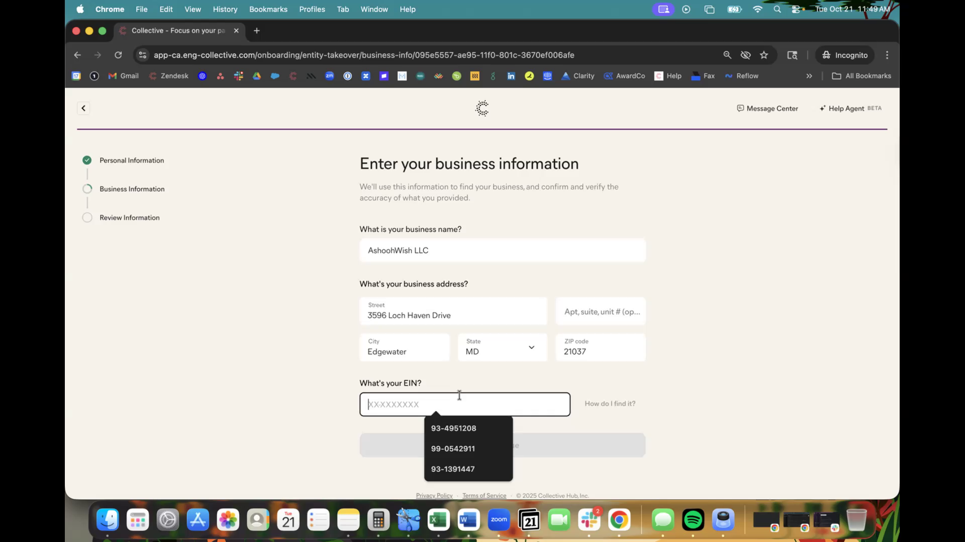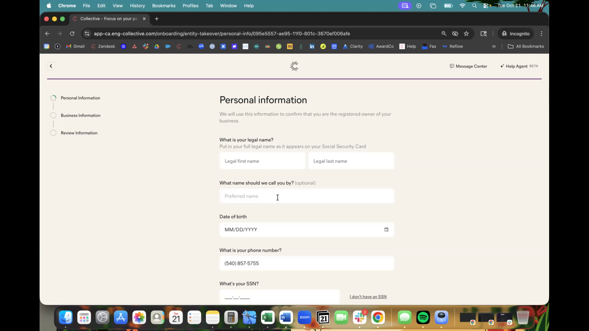 By following these steps, you have successfully set up your business with Collective. This guide has walked you through entering and verifying personal and business information, ensuring a smooth onboarding process. Your business is now set up and ready to move forward with Collective.