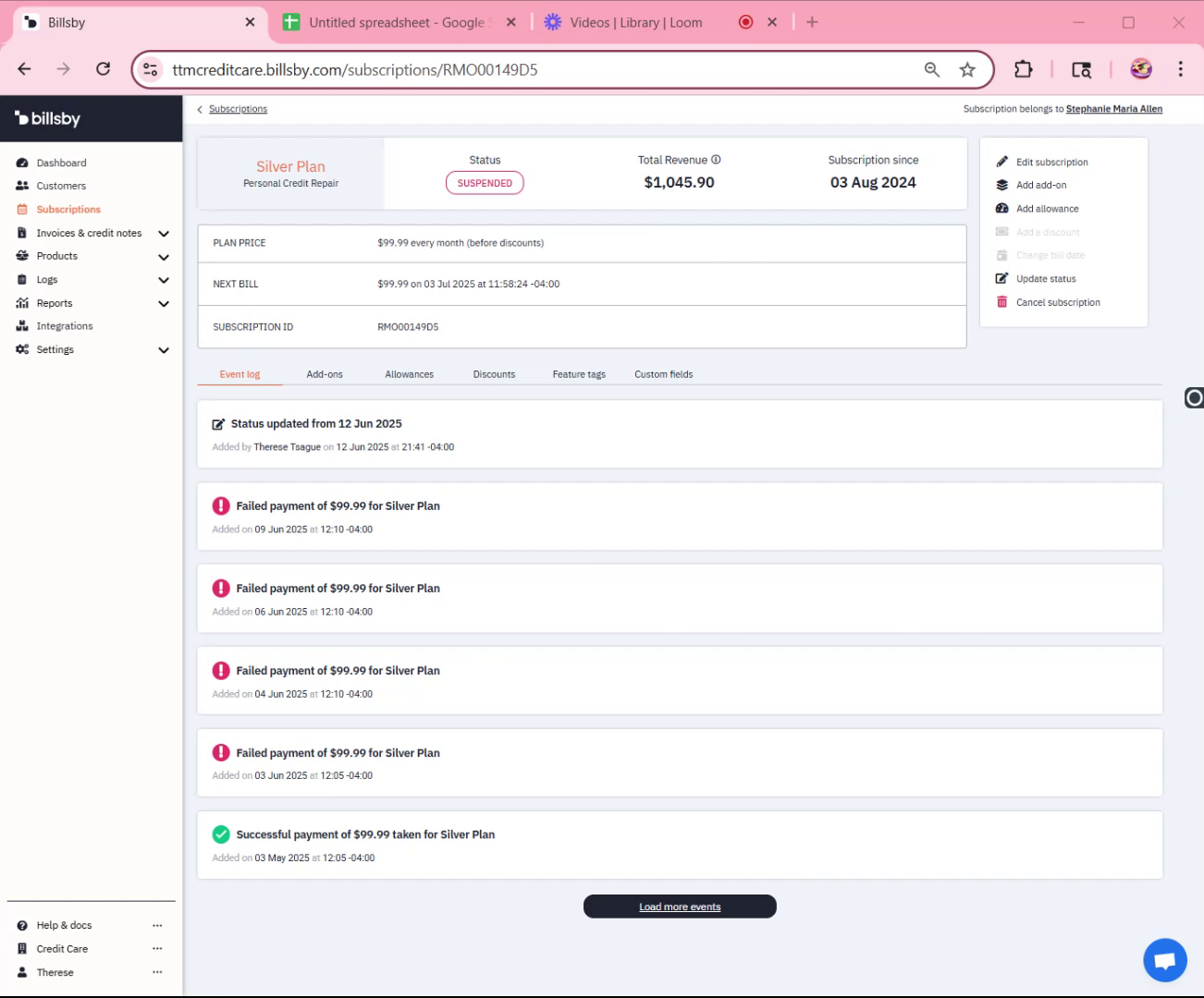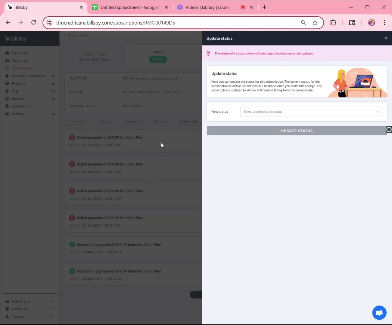 - Navigate to the client's subscription and check for unpaid invoices.