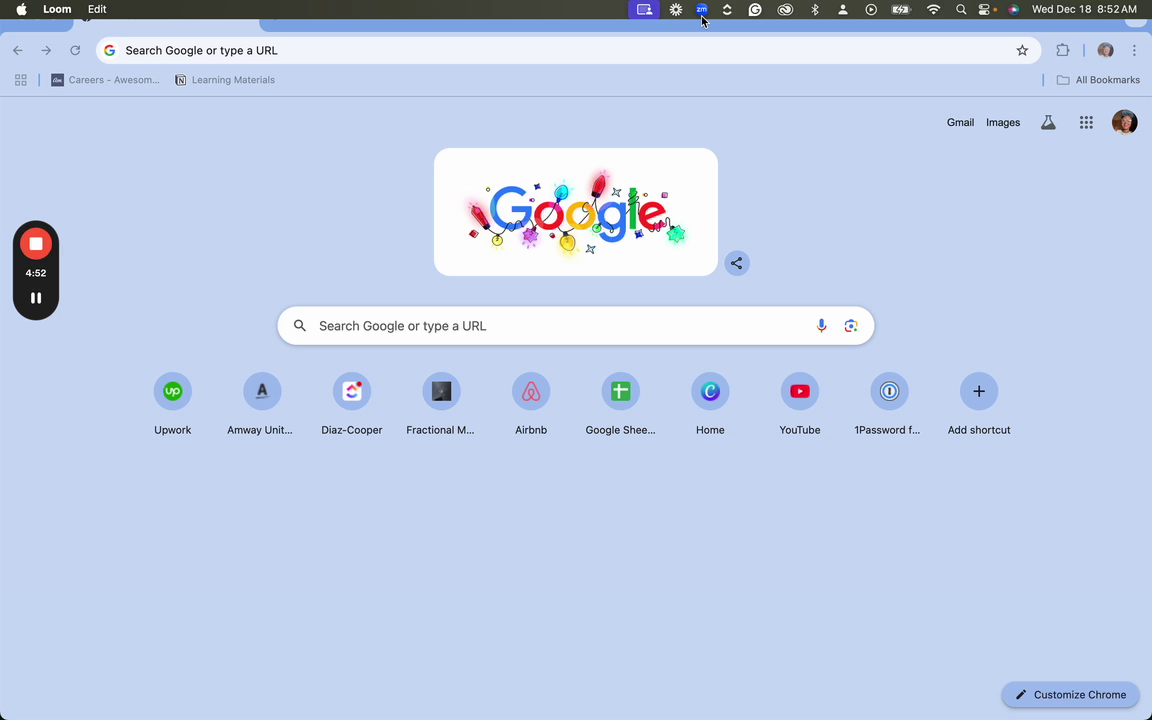 When you are ready to record, simply click the Loom icon in your extensions bar. This will initiate the screen recording process.