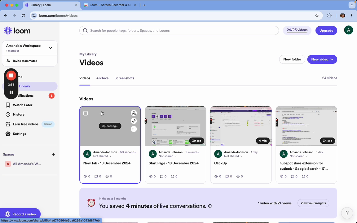 Once you have finished recording, click the stop button. An automatic video link will be generated, making it easy to share.