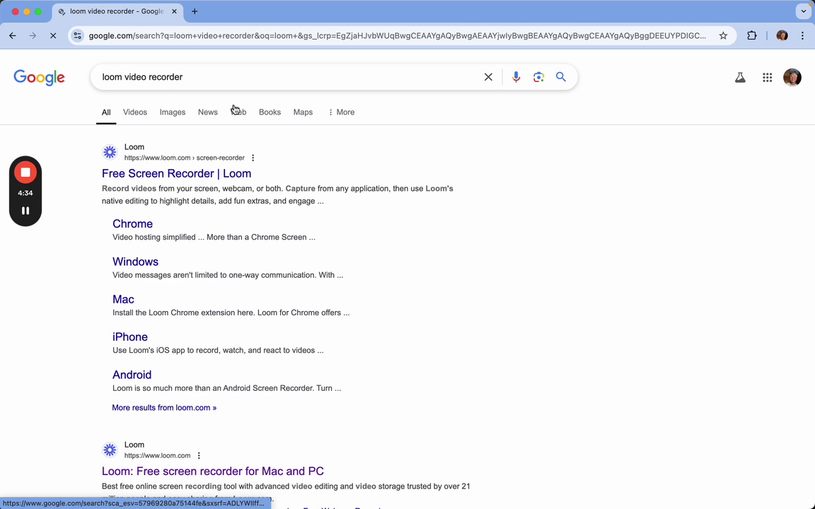 To begin, search for "Loom video recorder" in your browser. Click on the link for the free screen recorder.