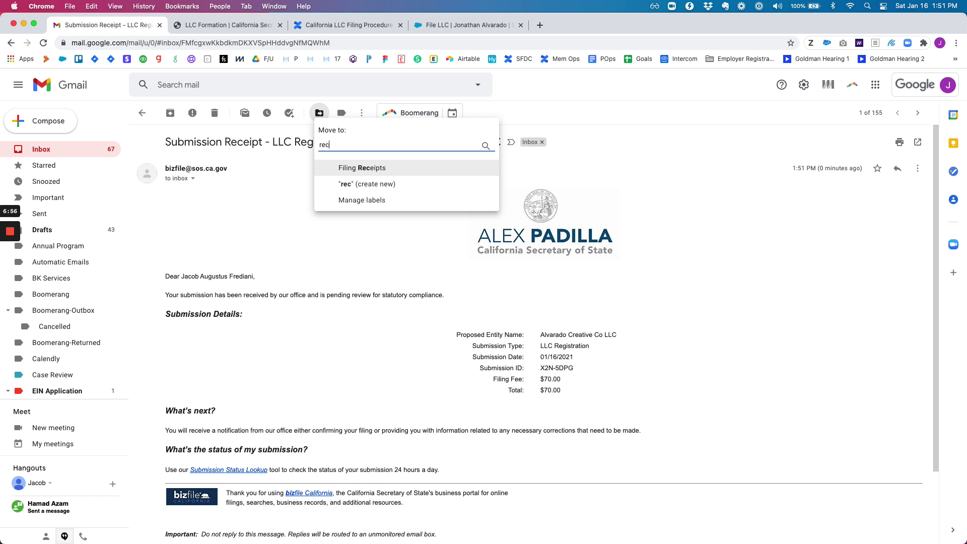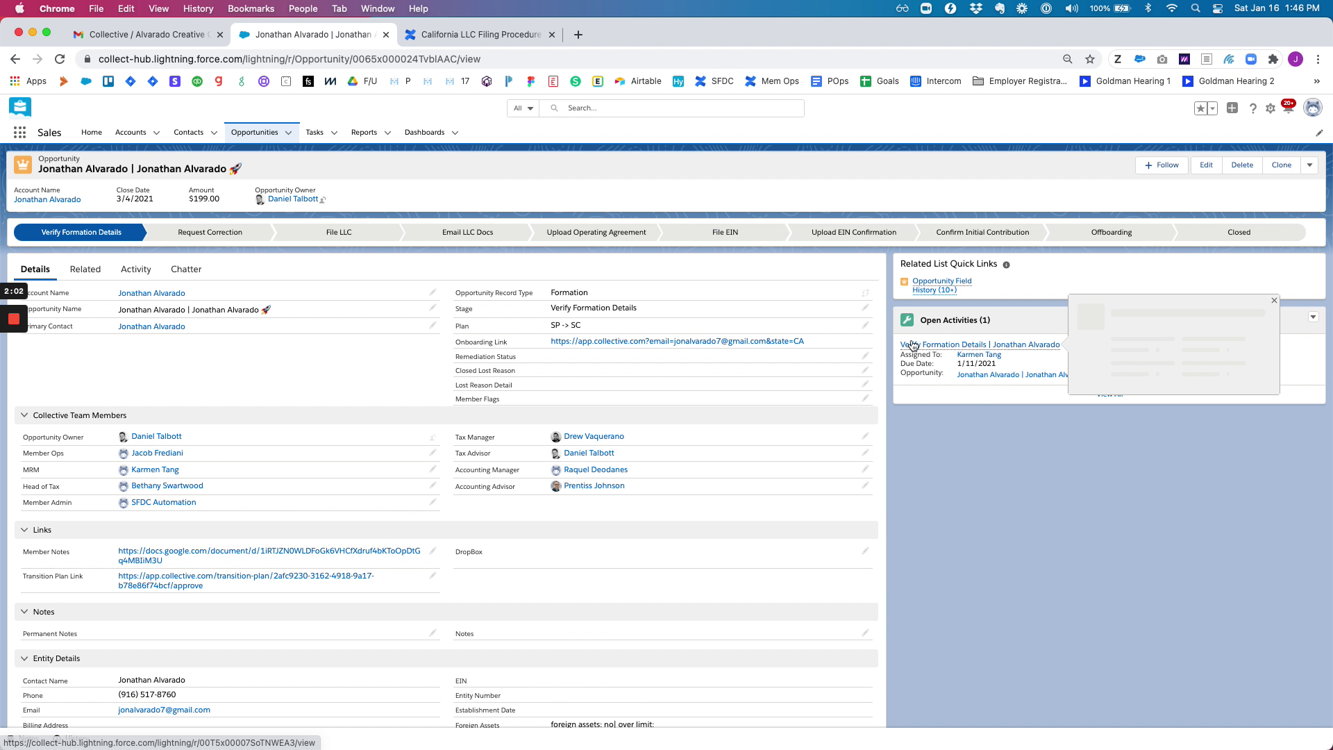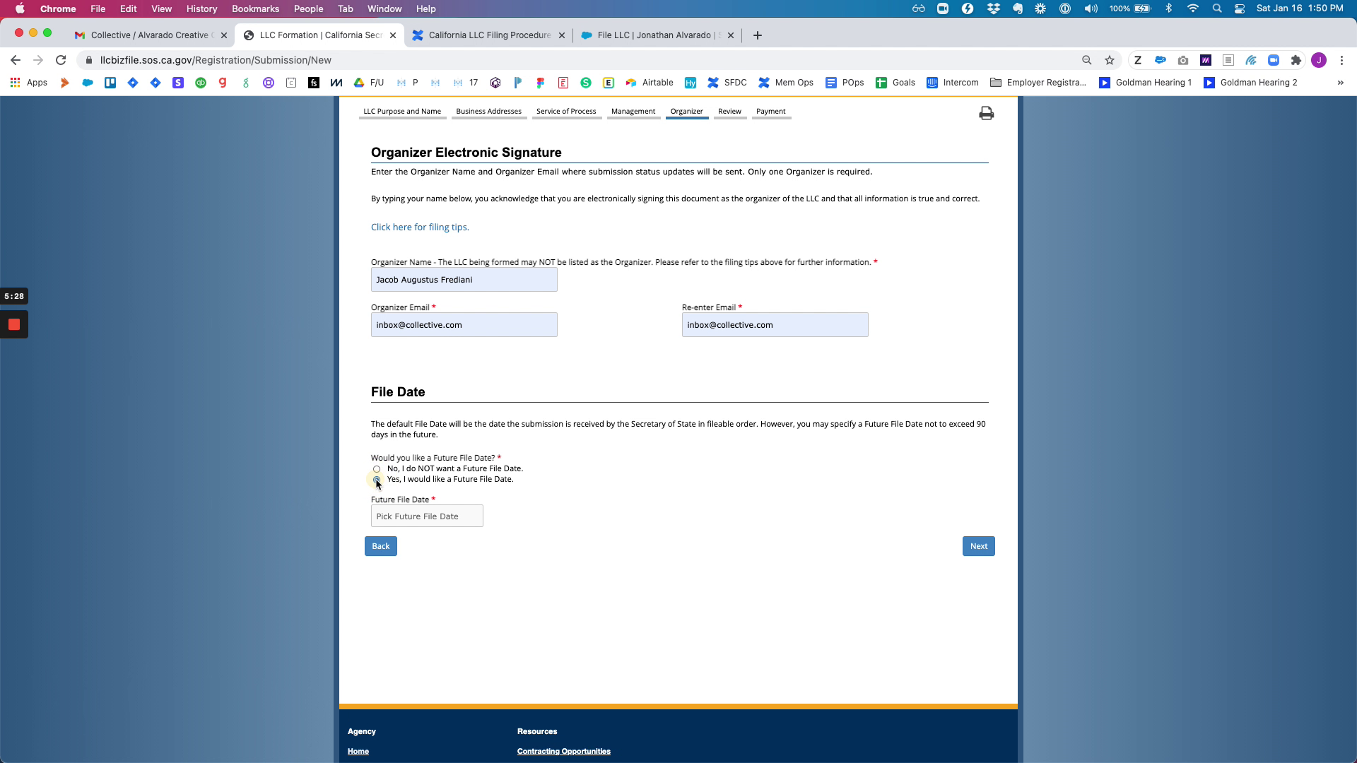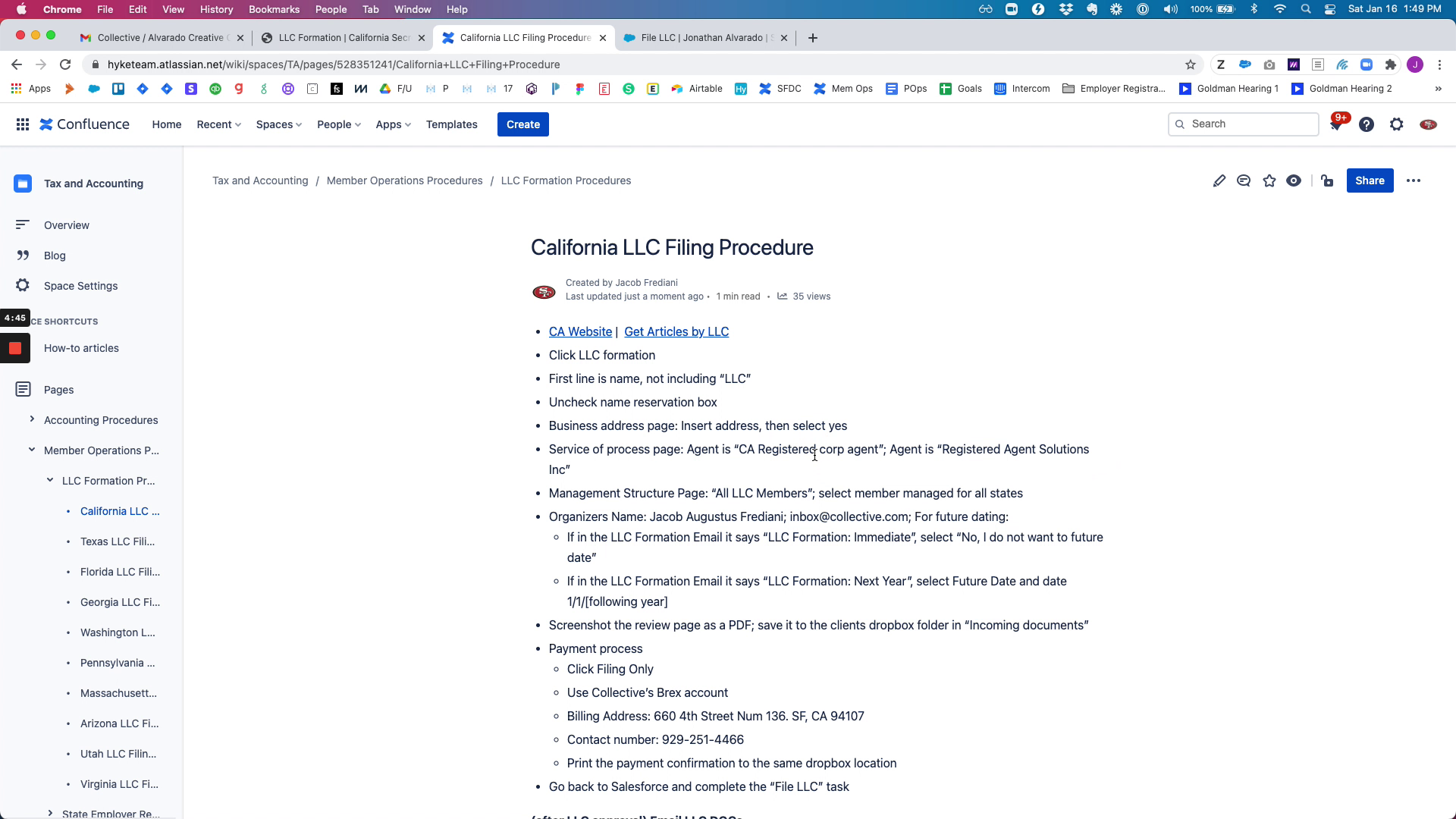 Once the LLC is filed, you will receive a confirmation email from the state. Save this for your records and complete the necessary tasks in Salesforce.