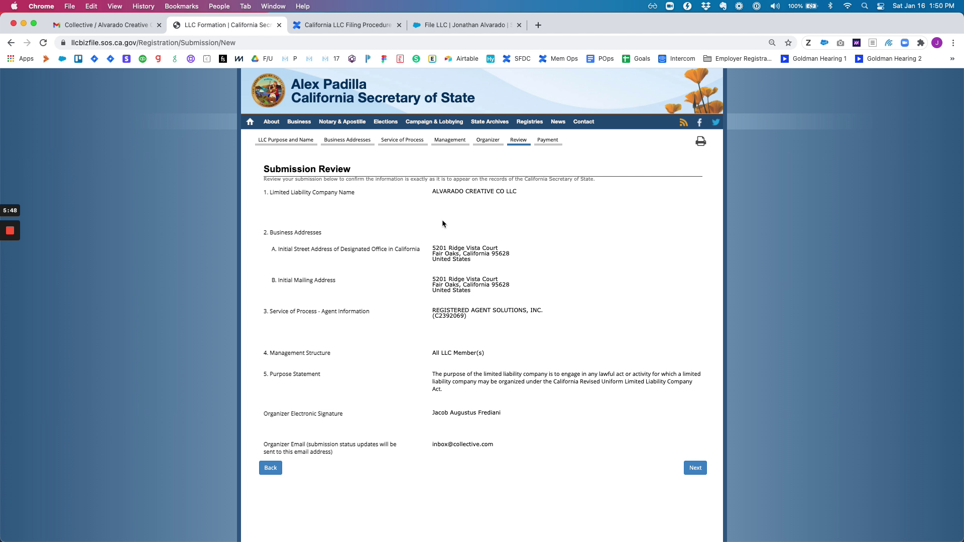 By following these steps, you have successfully filed a California LLC. This guide provides all necessary information to complete the process efficiently, ensuring that your LLC is properly registered and documented.