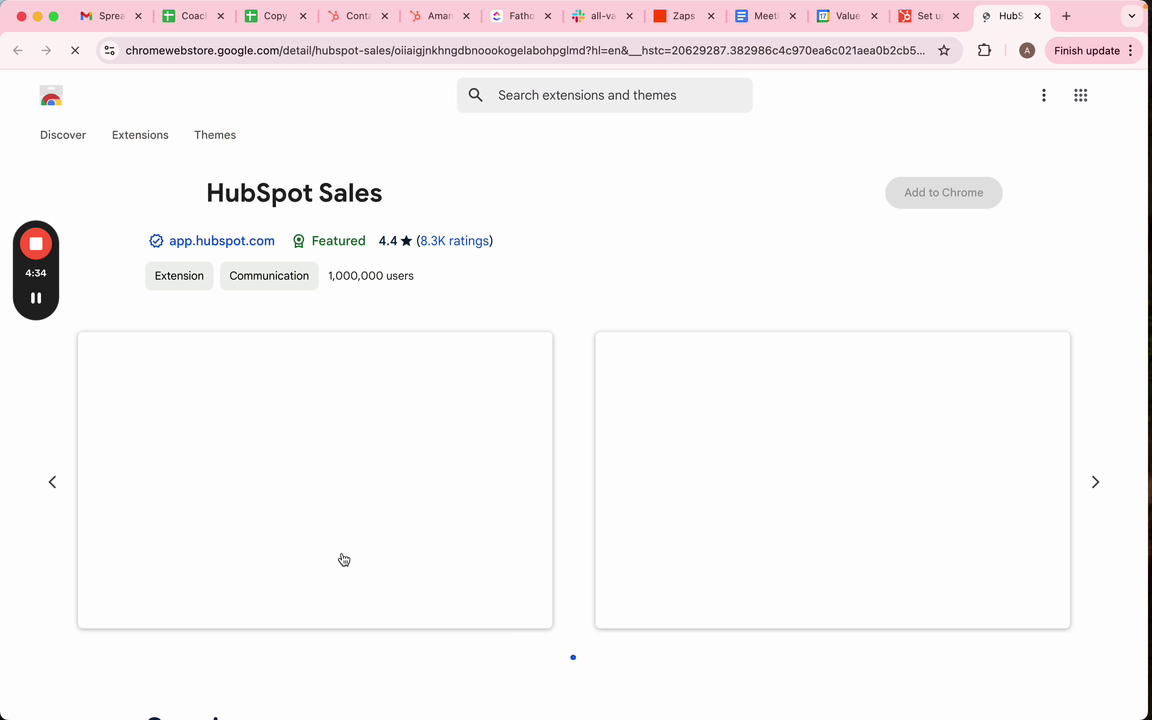 Once you've searched for the extension, you will be directed to a page where you can set up the HubSpot Sales Chrome extension.