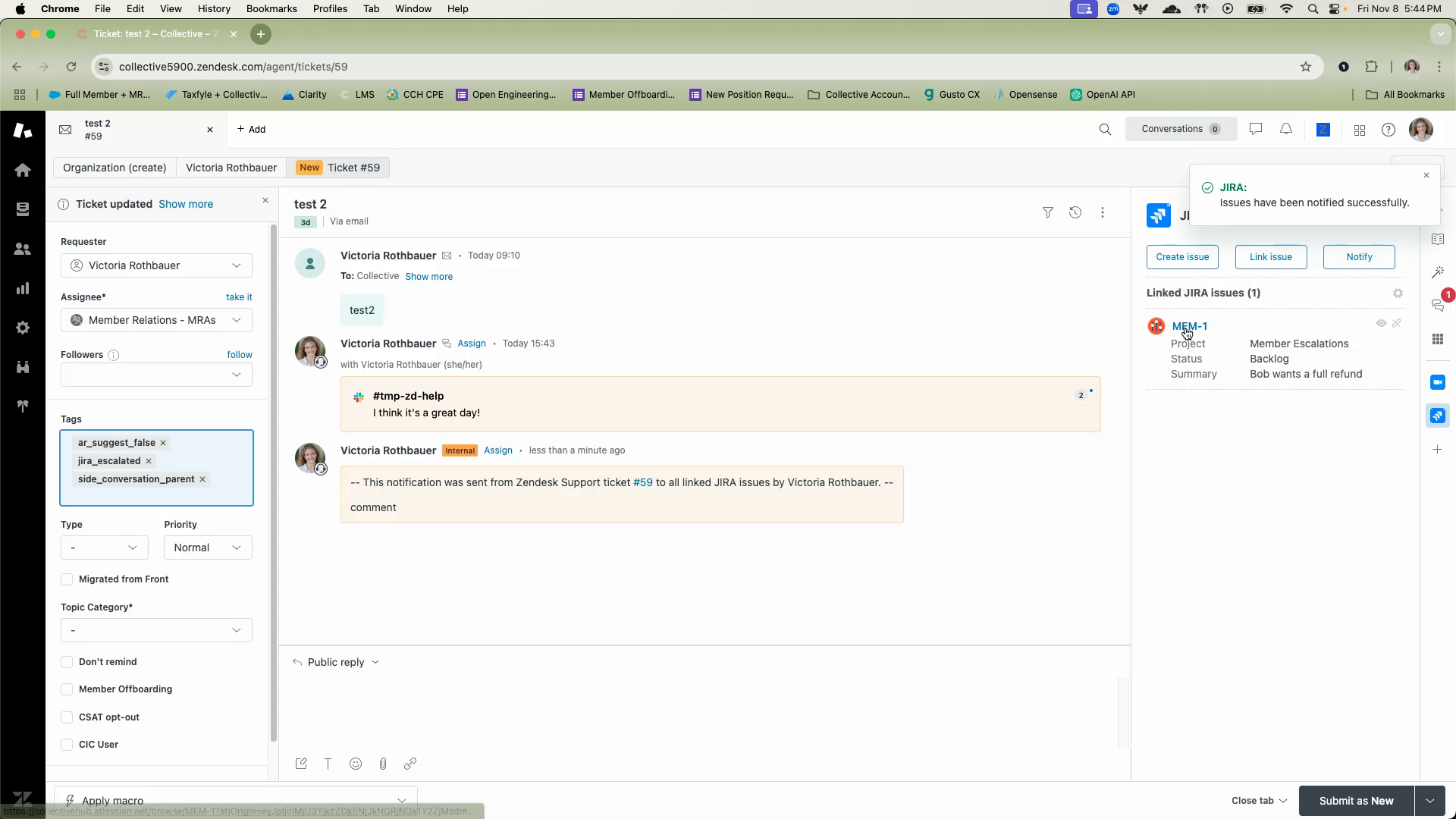 Finally, you can verify that the link and notification are reflected in Jira.