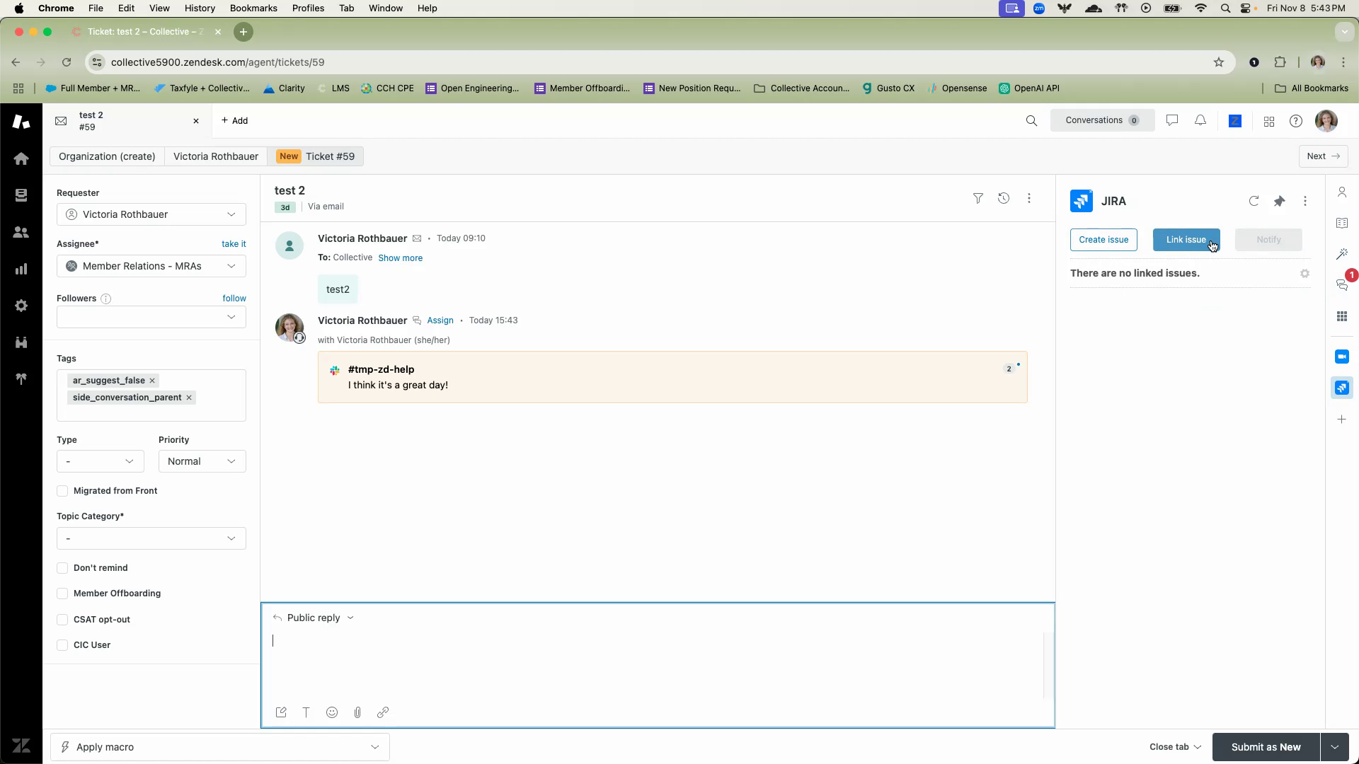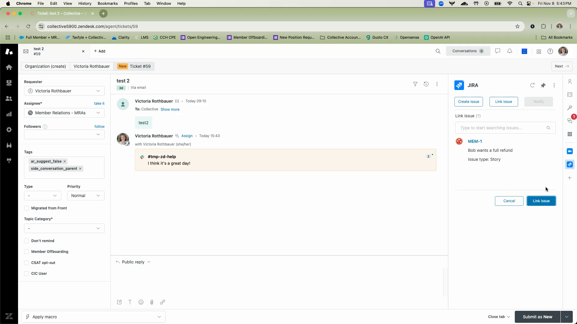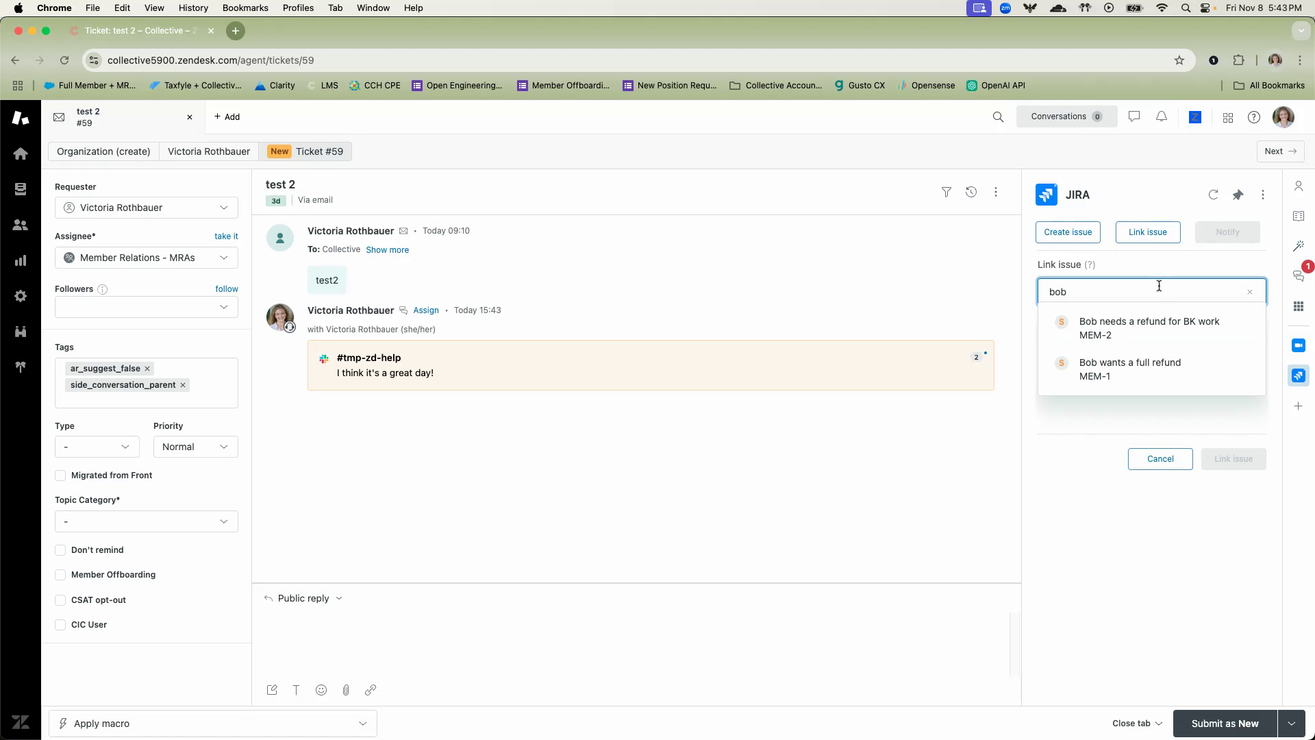Start searching for the specific ticket you wish to link. In this case, it’s a fake ticket created for testing purposes.