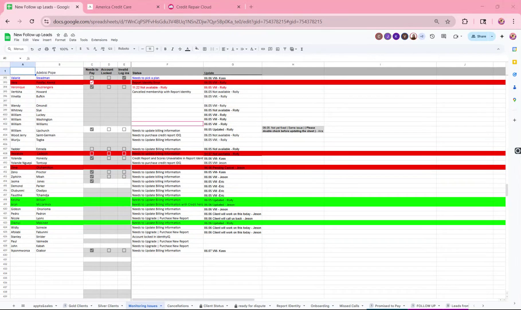 This guide outlines the process of addressing and resolving monitoring issues for clients. You will learn how to identify clients with issues, contact them, and update their status in the system. The expected outcome is the effective resolution of monitoring issues and accurate status updates.