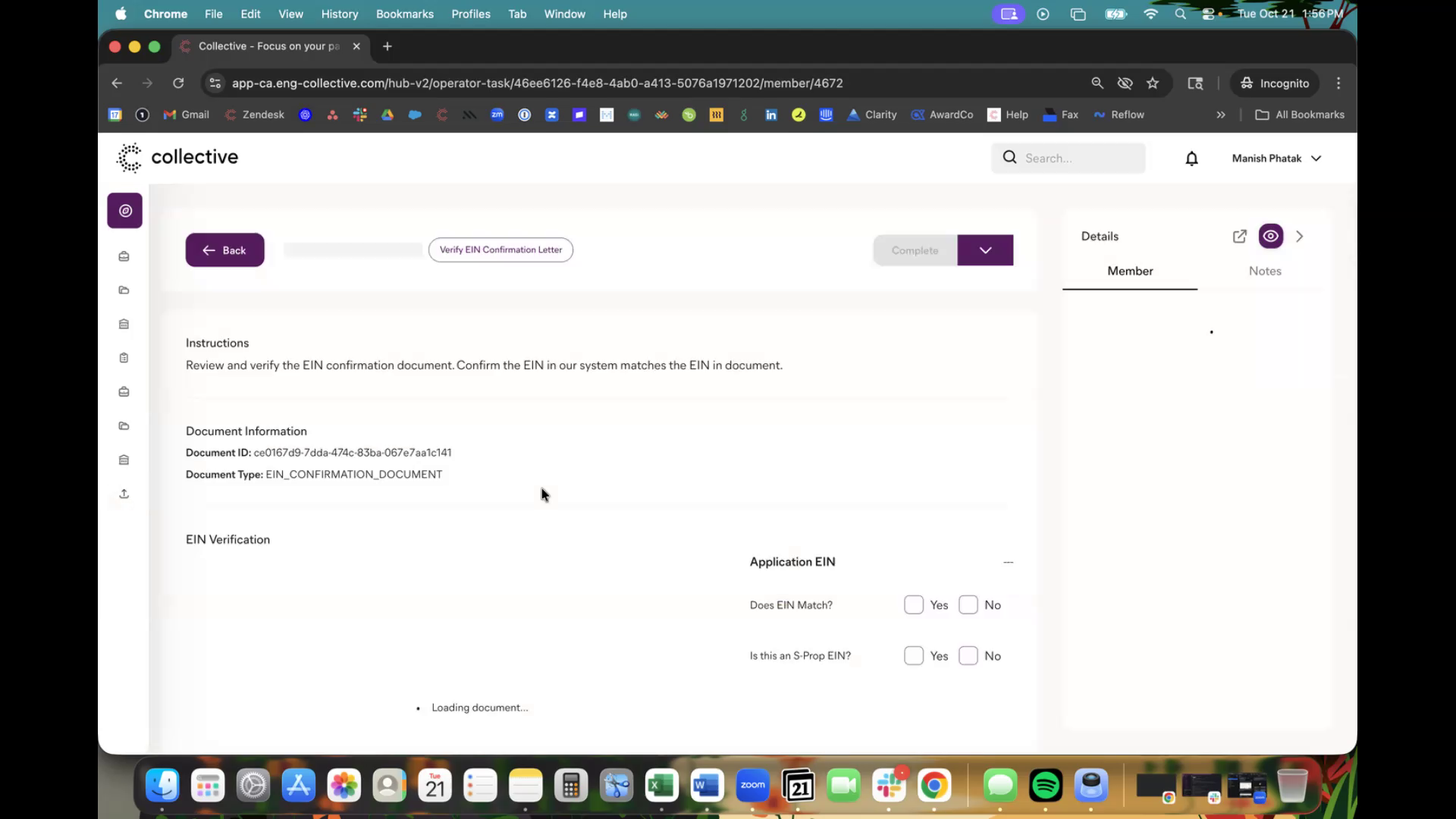 Check that the EIN number on the document matches the application EIN number. This step is crucial to ensure data accuracy.
