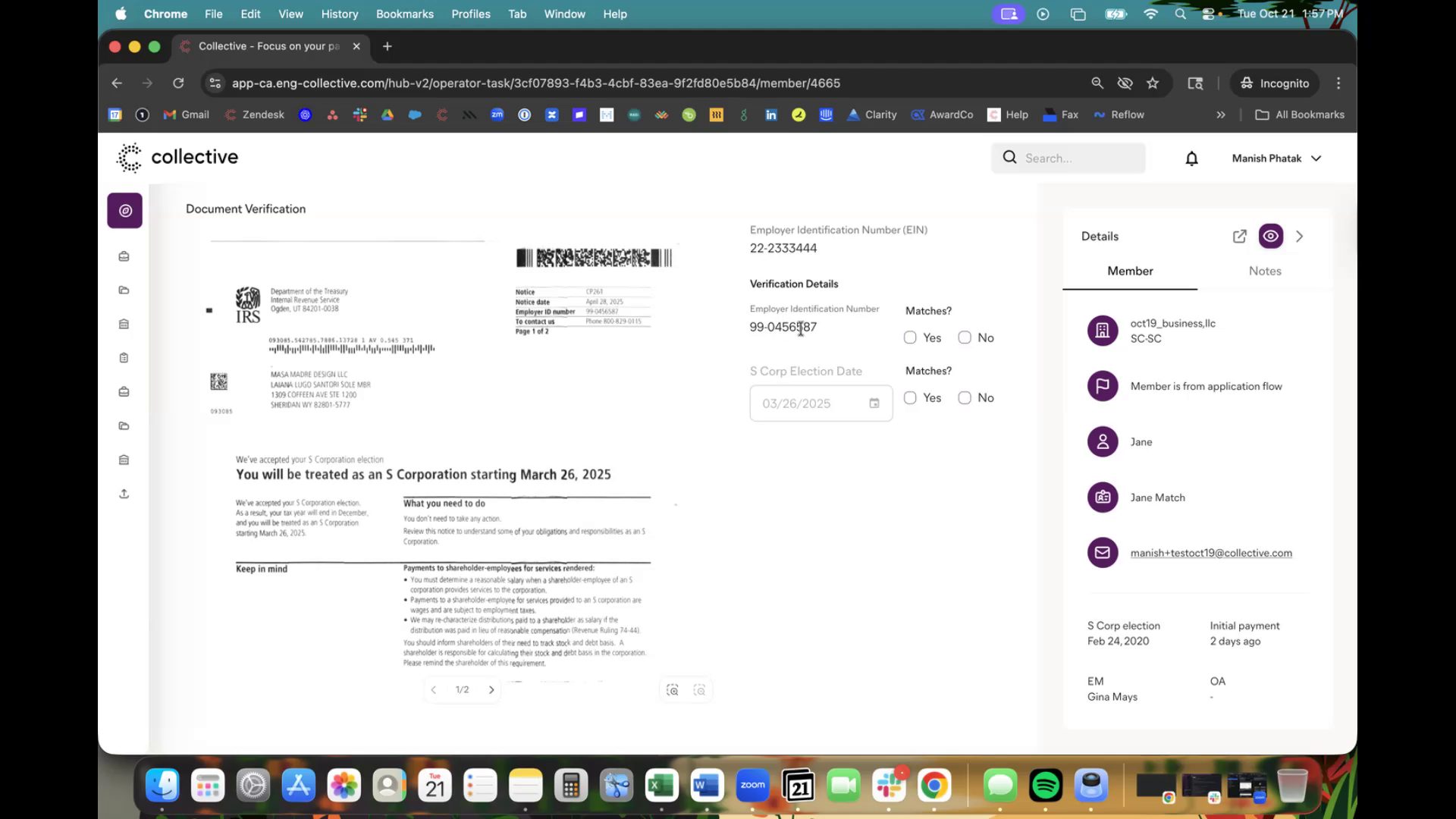 Double-check that the EIN on the S Corp approval letter matches the original EIN provided.