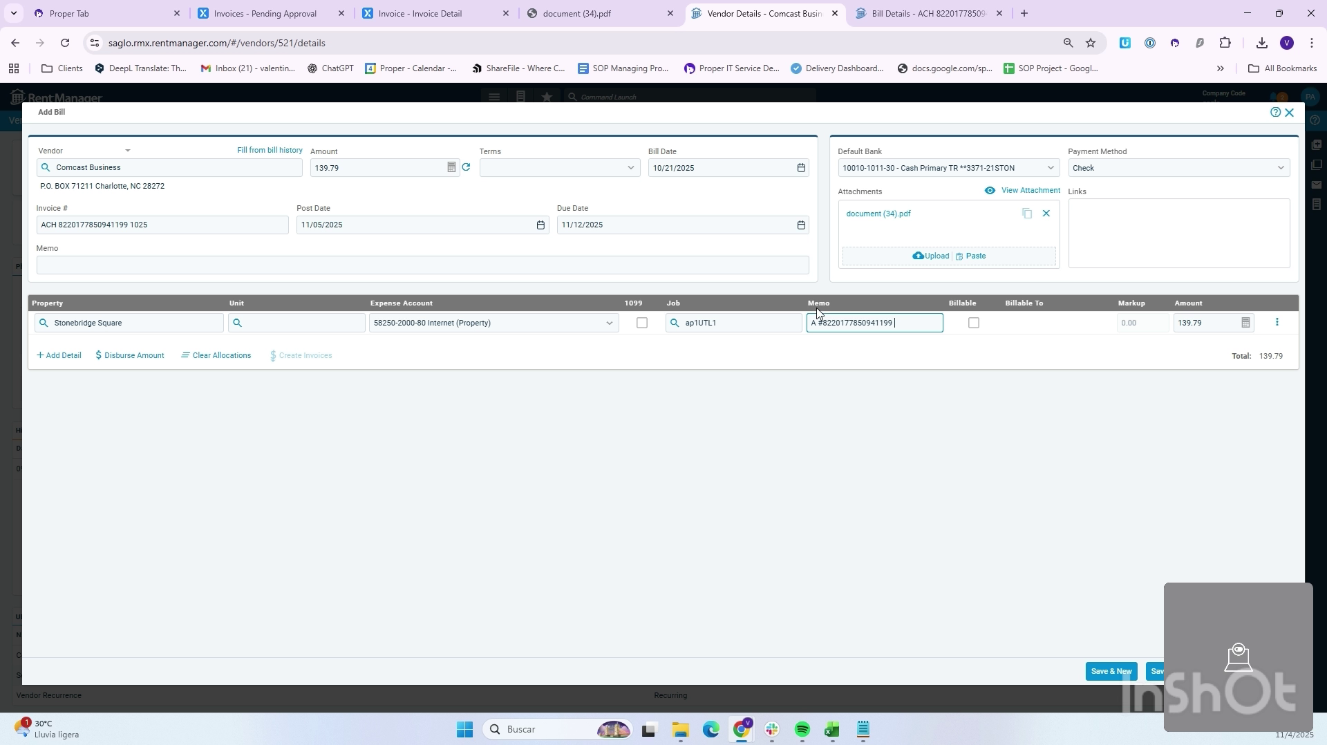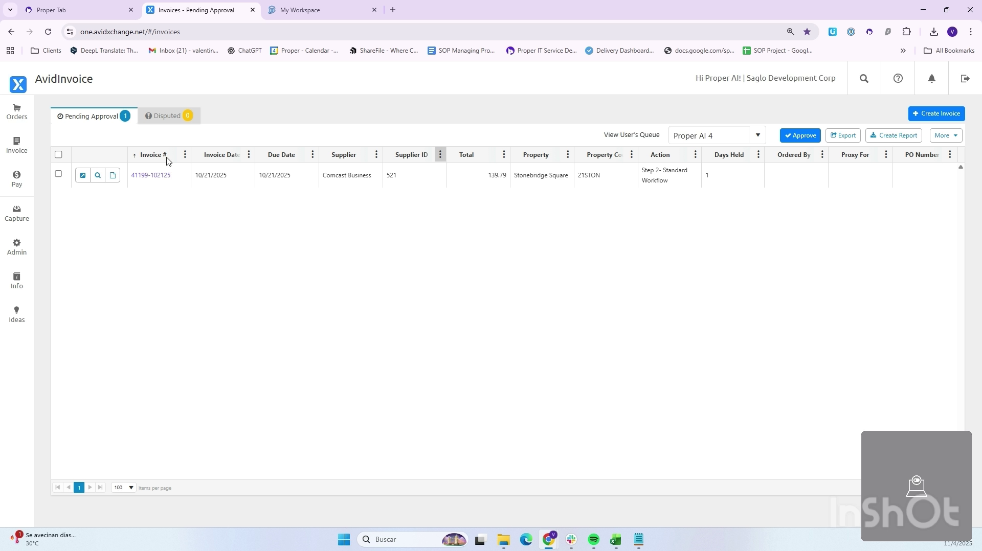 Ensure the invoice is approved by the property manager, as most invoices in the workflow are pre-approved. If it's a recurring invoice, there might not be any comments.