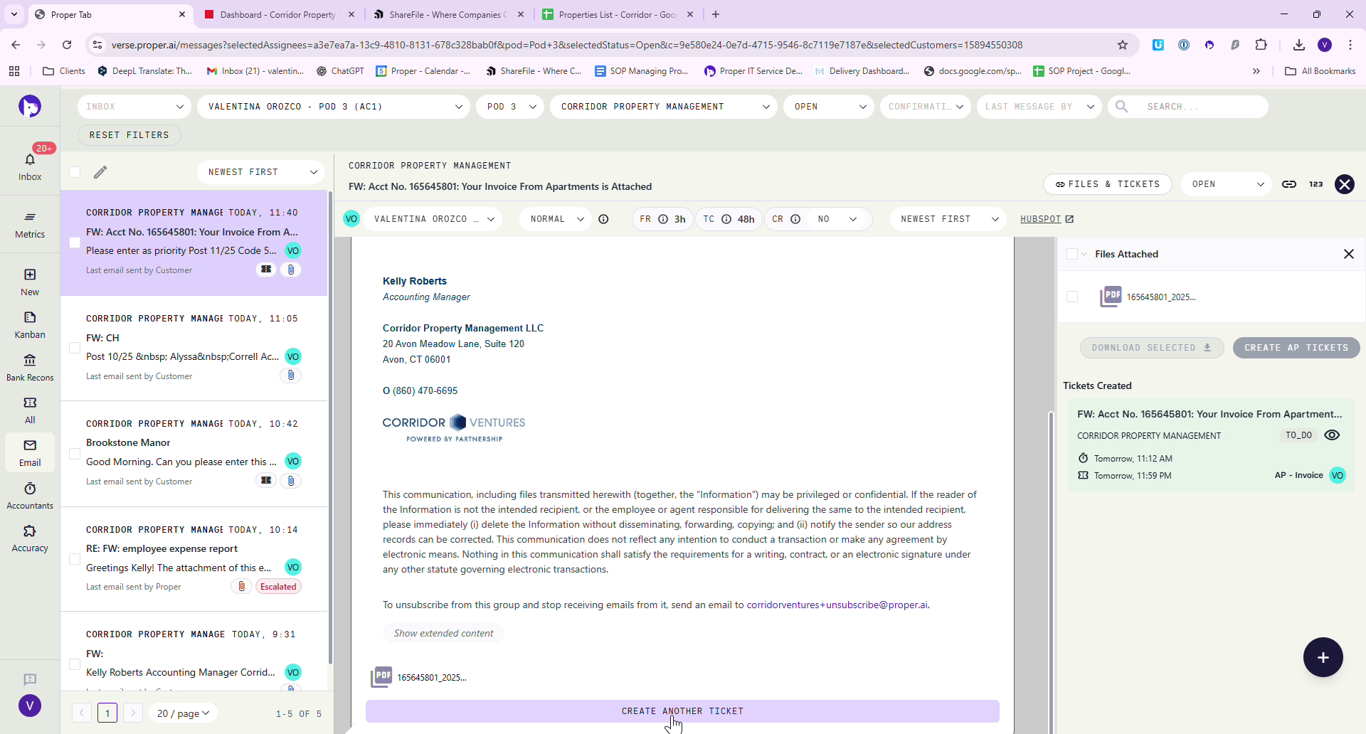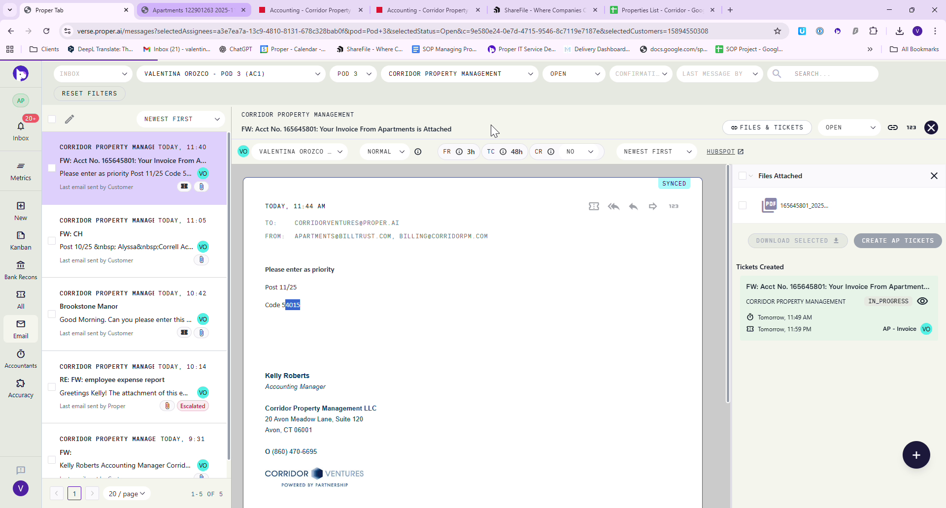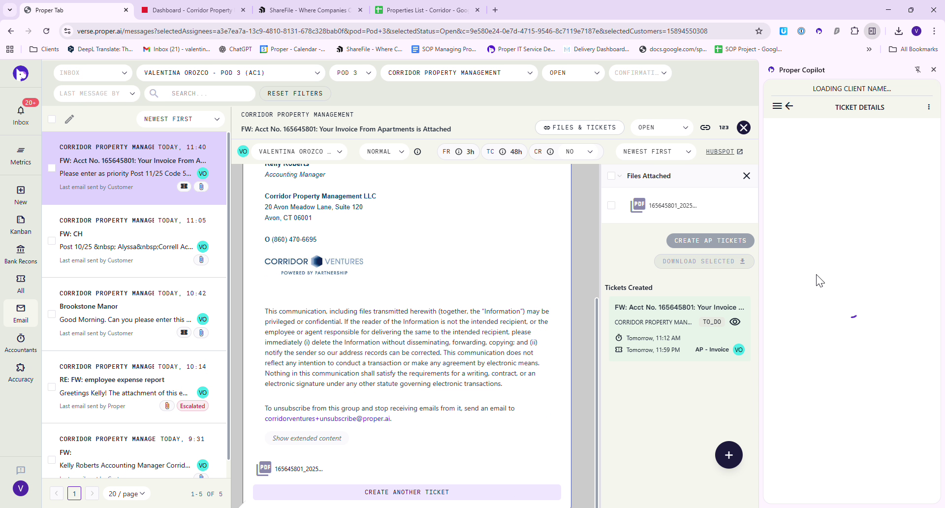 Access ShareFile where all Corridor processed invoices are stored. Locate the appropriate vendor folder, in this case, Bellamay, and save the invoice using a specific naming convention: "Apartments, Invoice Number, Date".