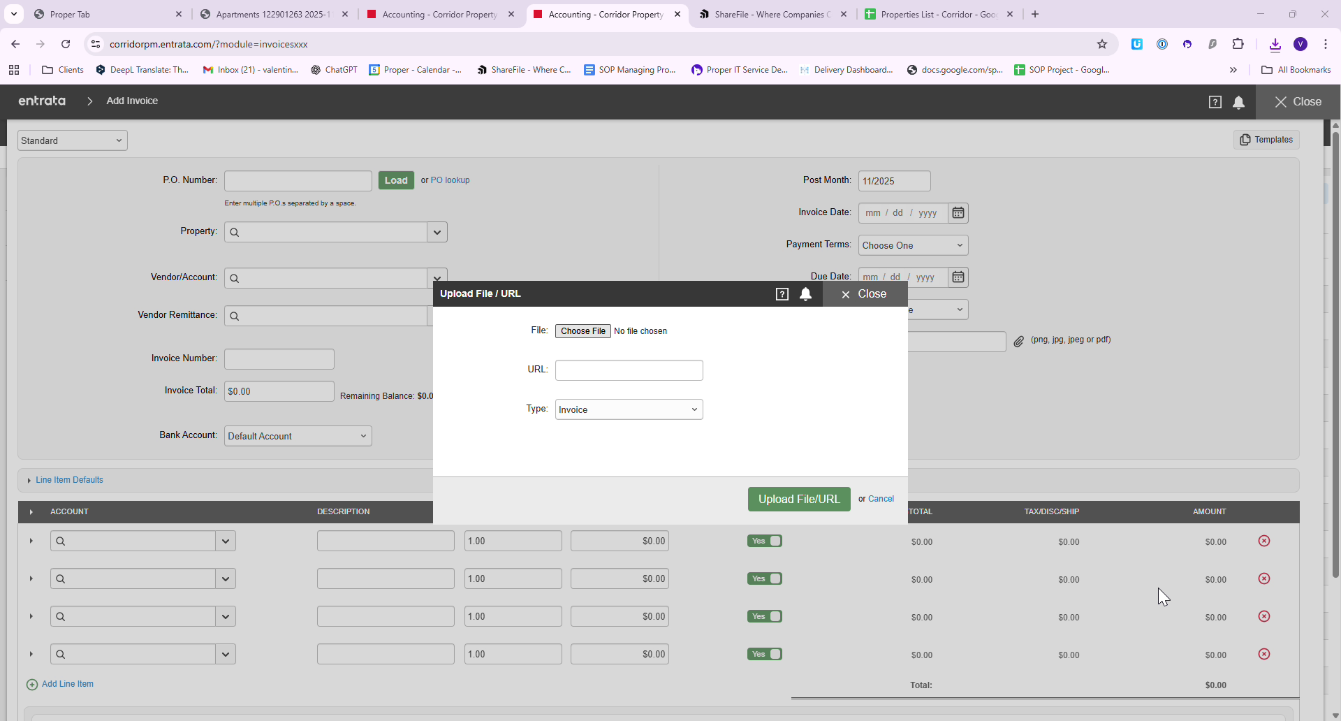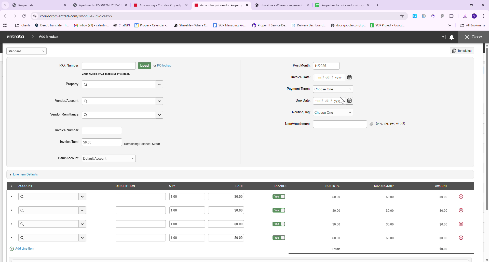 Processing Invoices in Entrata PMS for Corridor
