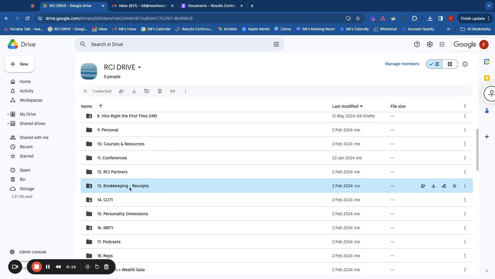 - Look for folder number 13 labeled "bookkeeping receipts" and open it.