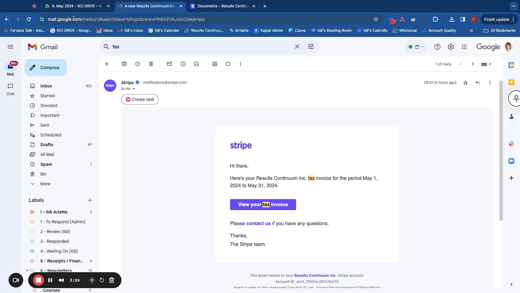 - Search for tax invoices, such as those from Stripe, and download them directly from your account.