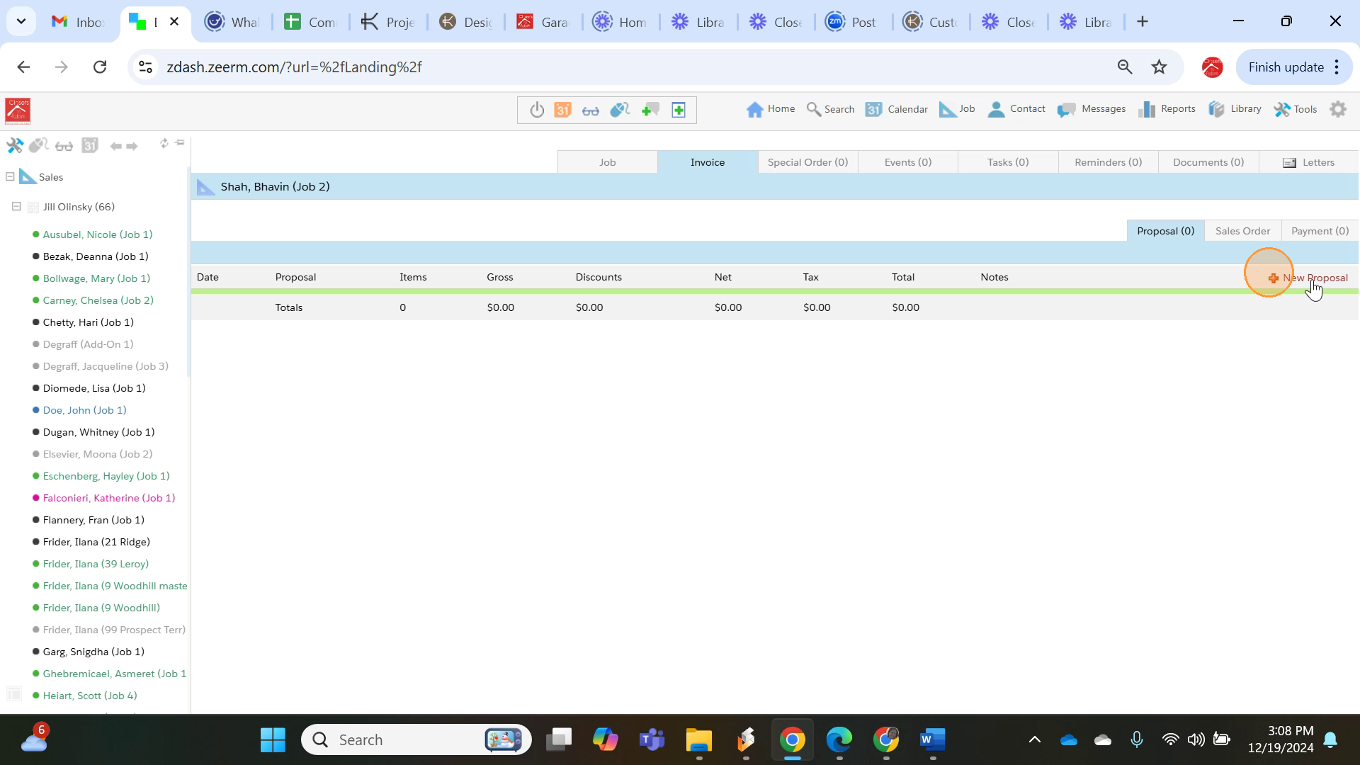 - Create a New Proposal\ Navigate to the invoice tab and click the green button labeled "New Proposal".